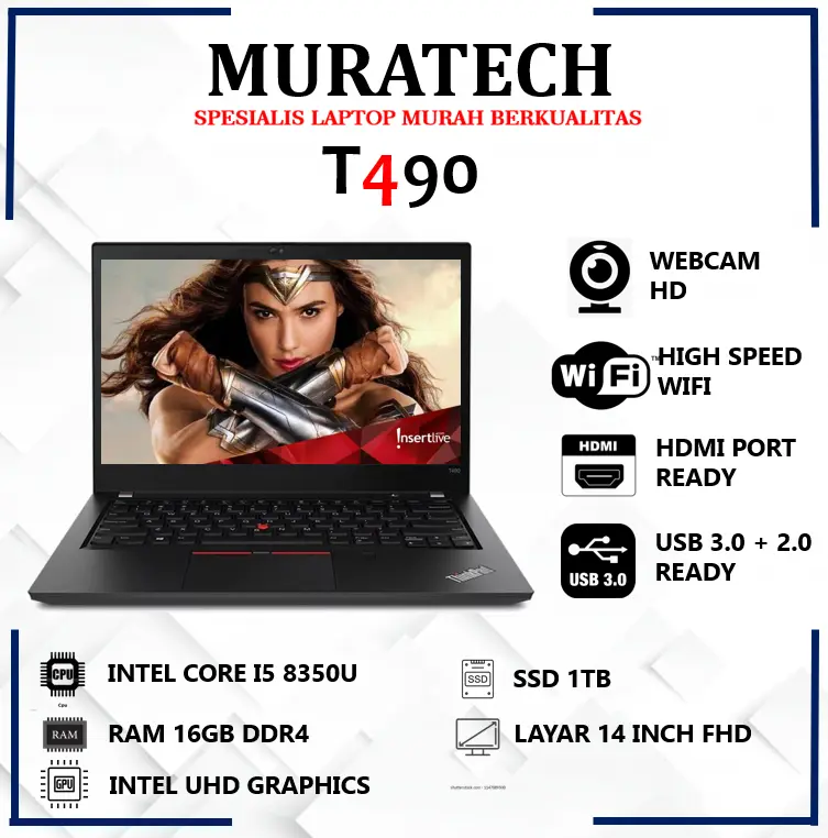 Laptop Kerja Murah Thinkpad T Series I T460 T470 T480 T490 Core I5 Ram 8GB SSD 512GB 14 Inch FHD 1080p slim