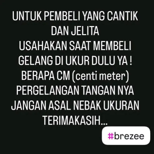 Gelang ini cocok untuk segala usia, baik wanita maupun anak-anak. Panjang gelang tersedia dalam ukuran 10 cm hingga 18 cm. Foto yang ditampilkan adalah 100% realpict dan stok ready banyak.