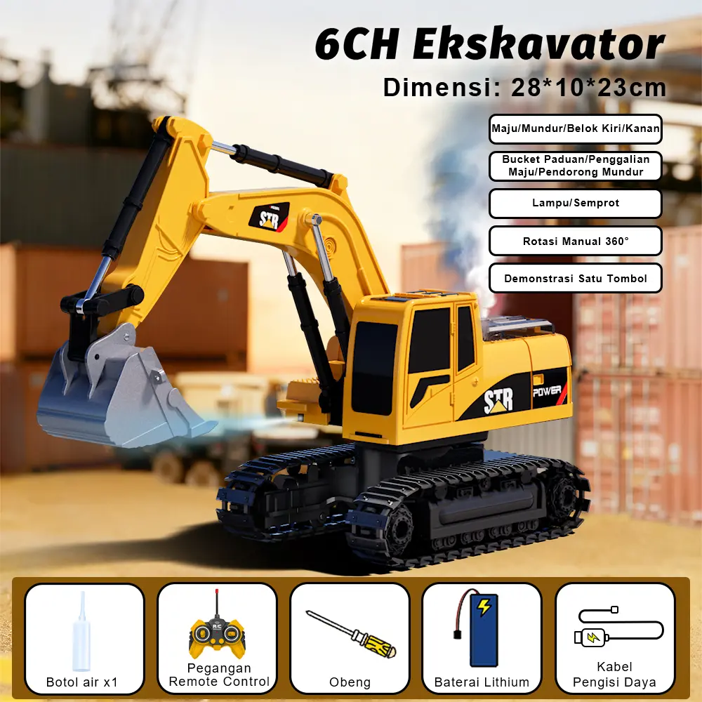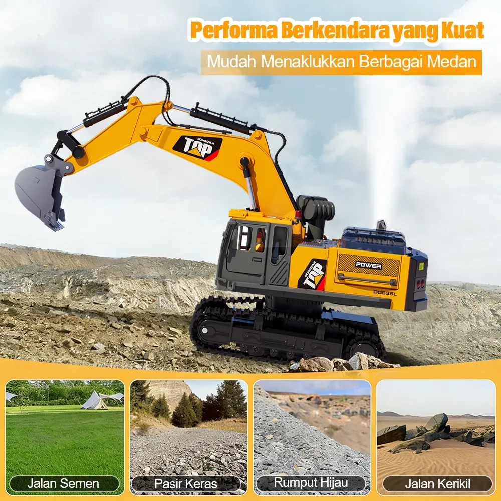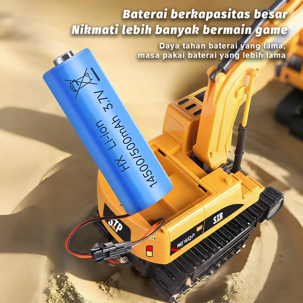 Β·6-SALURAN PENUH FUNGSI: Mainan ini bekerja seperti ekskavator nyata. Dibangun di atas motor kuat dan jalur karet berat. Cocok untuk karpet, kotak pasir, pantai, atau medan kasar. Fitur bergerak maju/mundur, belok kiri/kanan, mengangkat ke atas dan ke bawah, rotasi 360Β°, dan kabin 680Β° in-situ.