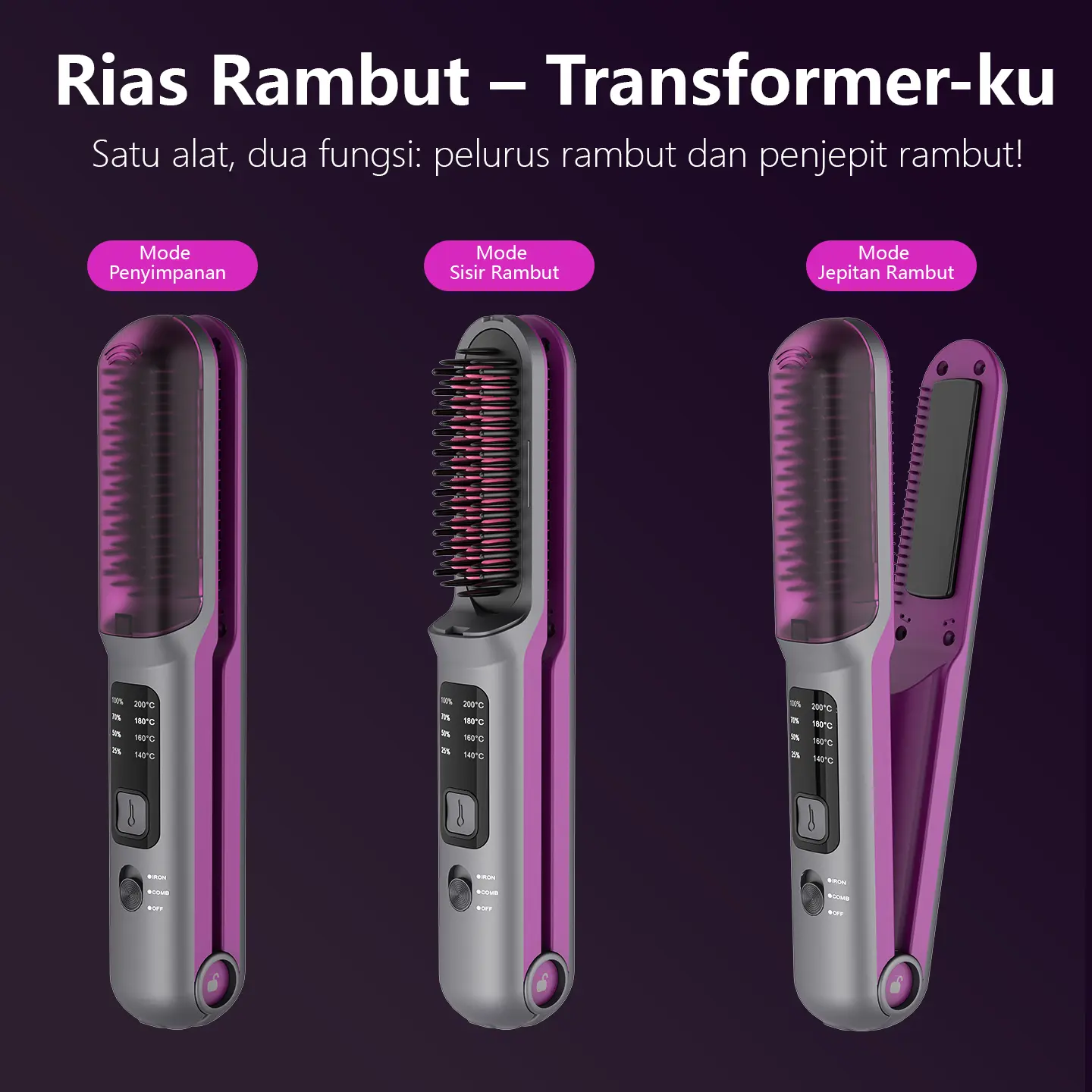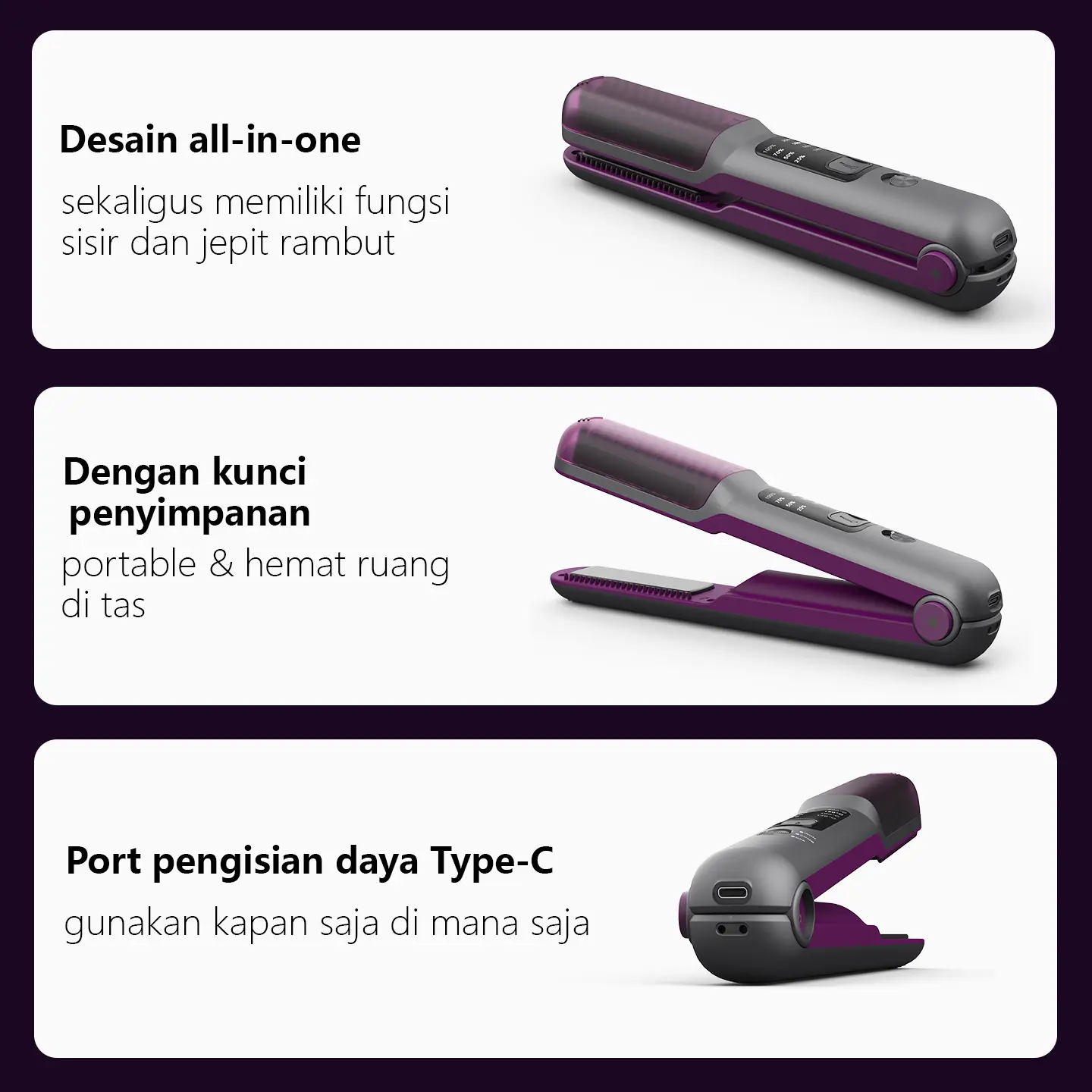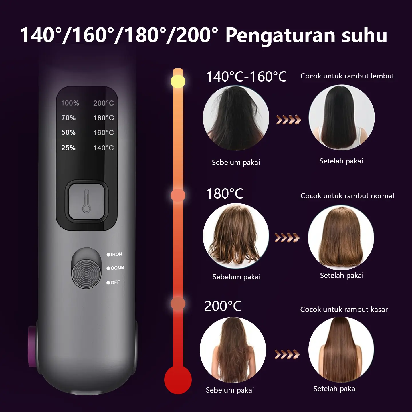 - 2in1 Multifungsi:Catok & sisir lurus dalam 1 alat, hemat biaya dan ruang