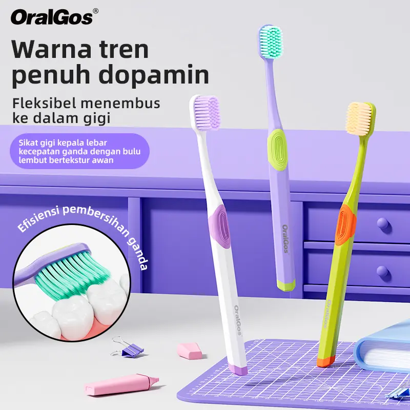 OralGos Sikat Gigi Berbulu Lembut Dopamine Warna Tren Penuh Fleksibel Menembus Efisiensi Pembersihan Ganda Halal