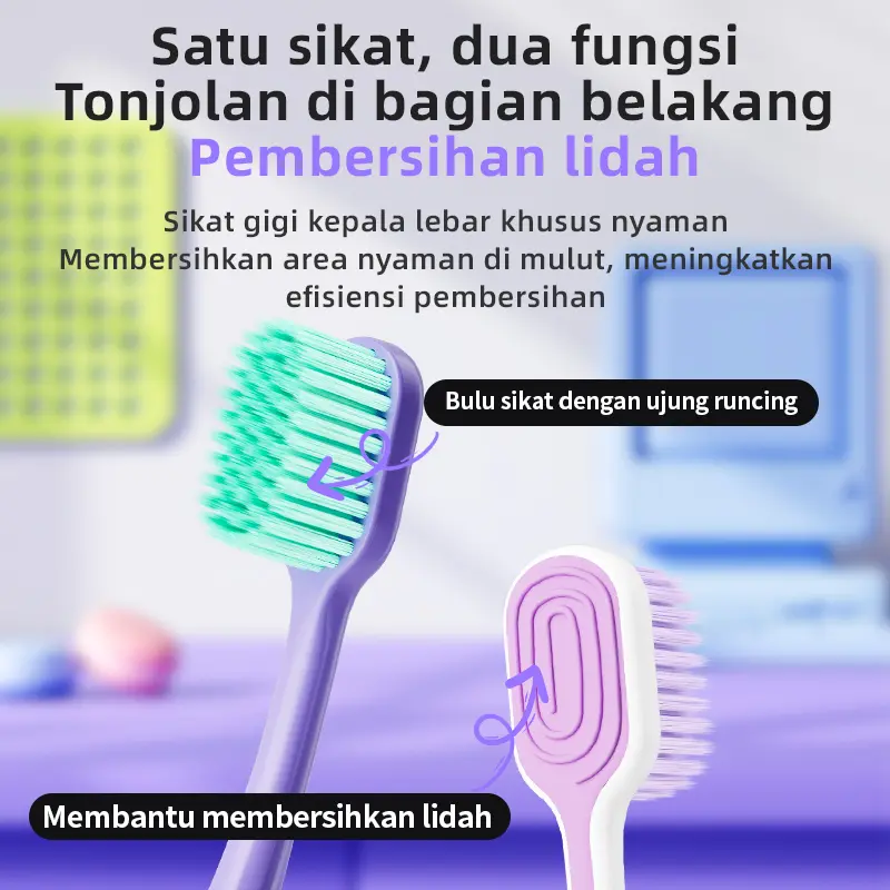 ·Fitur: Sikat gigi berbulu lembut dengan dopamine warna tren. Fleksibel dan menembus efisiensi pembersihan ganda. 🌈