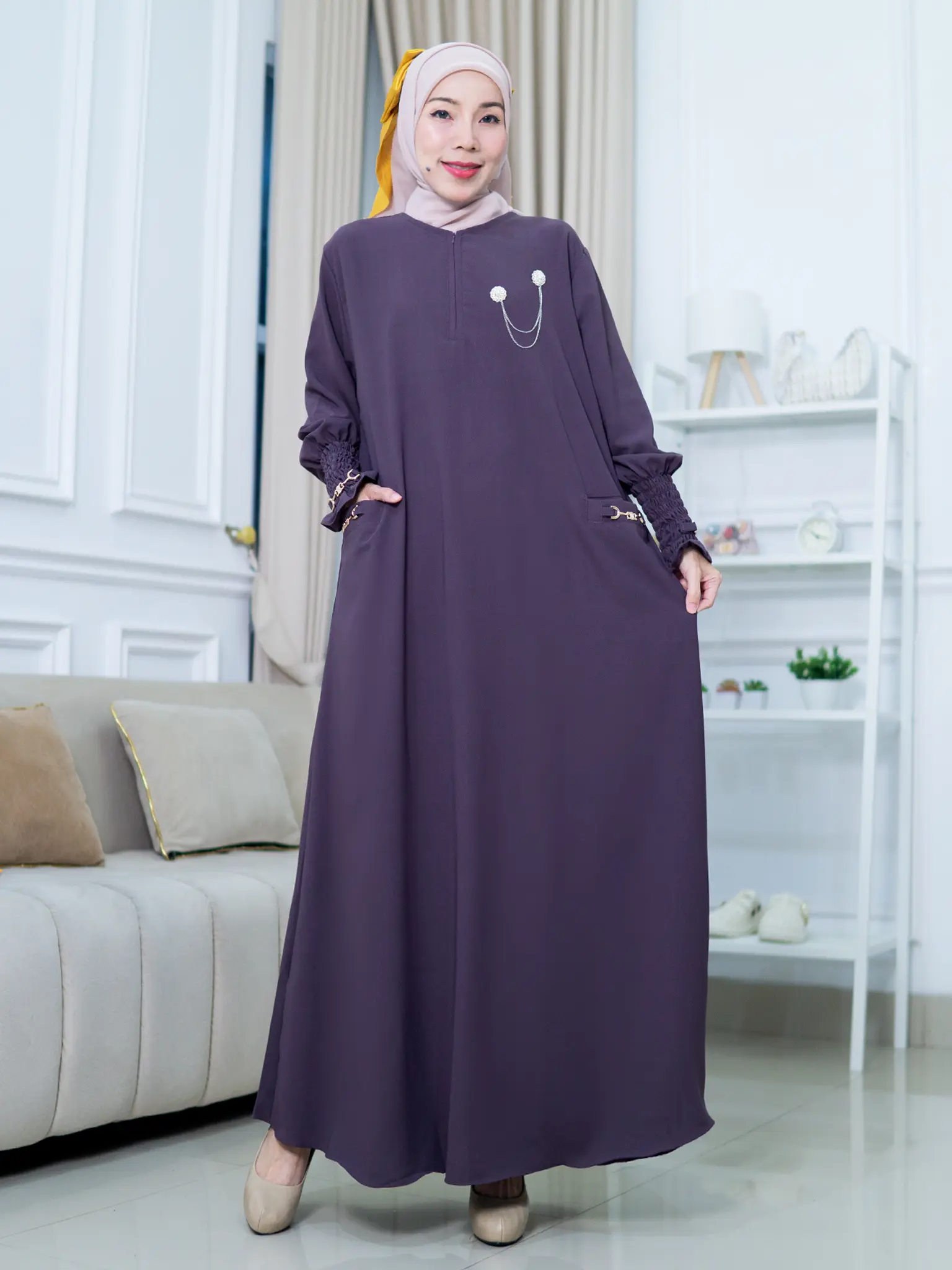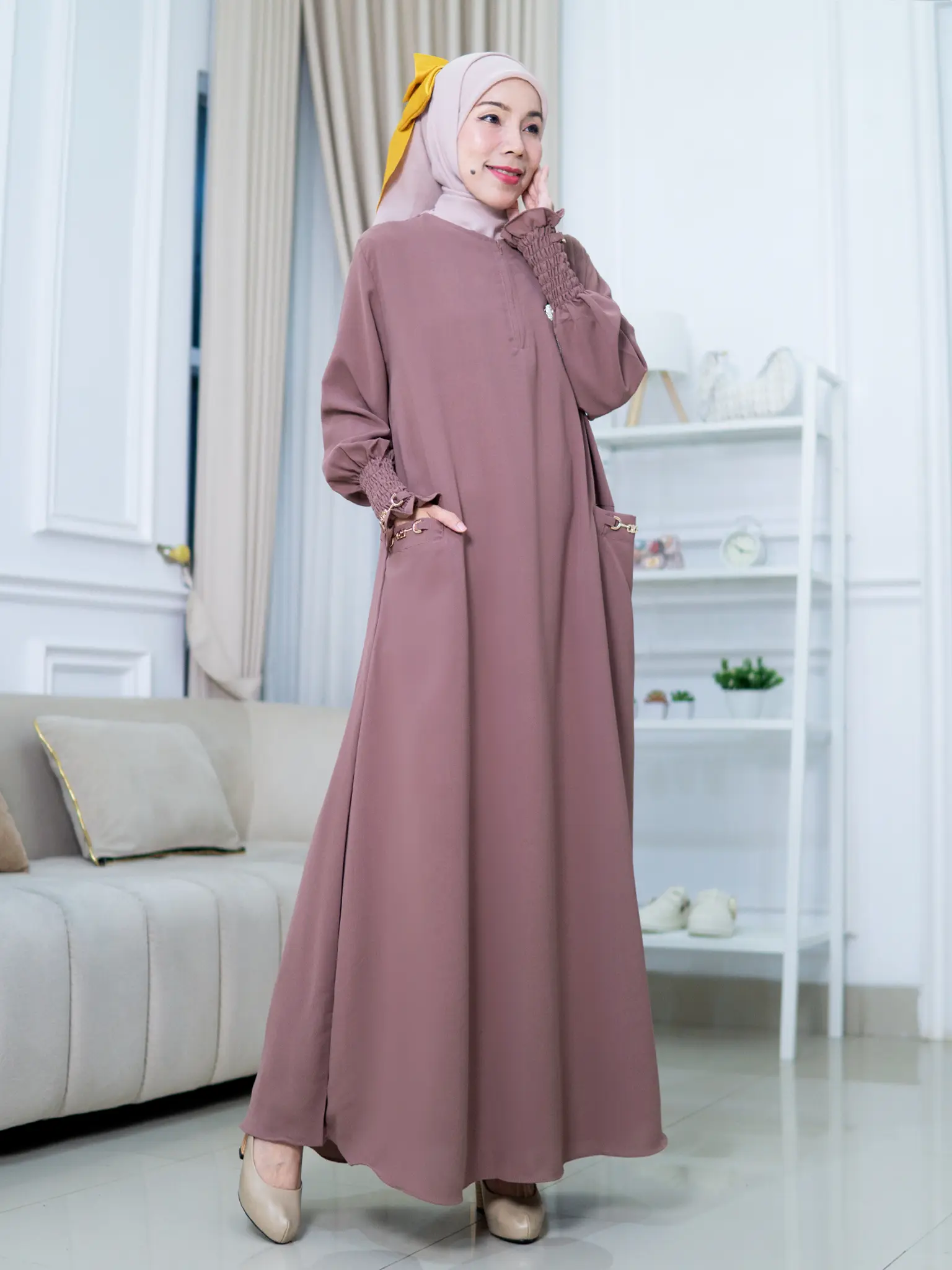 Model: Lengan karet smoke dengan tambahan acsesoris, gaya modest premium
