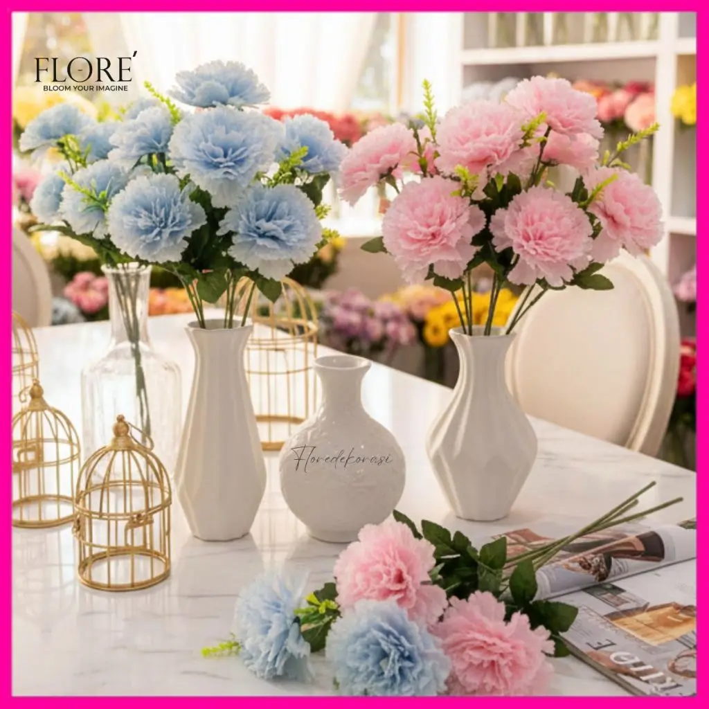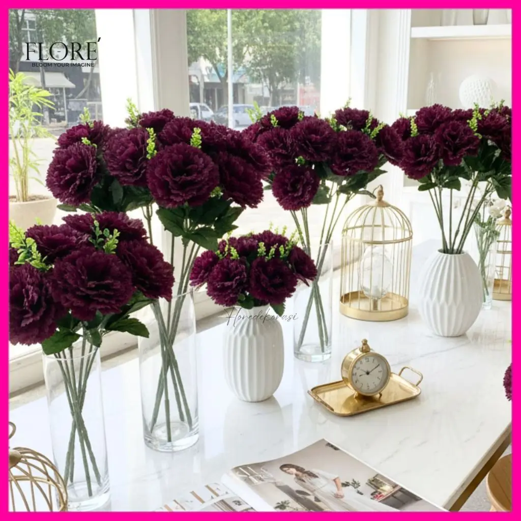 Bunga Anyelir Artificial 5 Cabang/Bunga Dekorasi Pernikahan 35cm