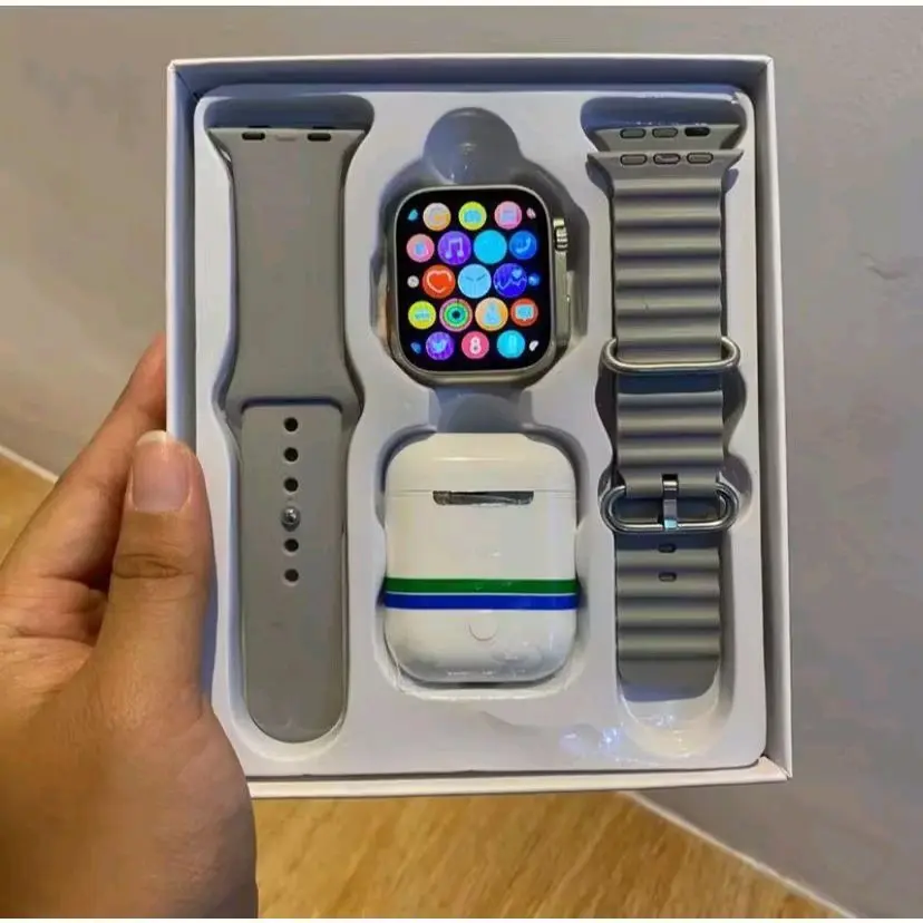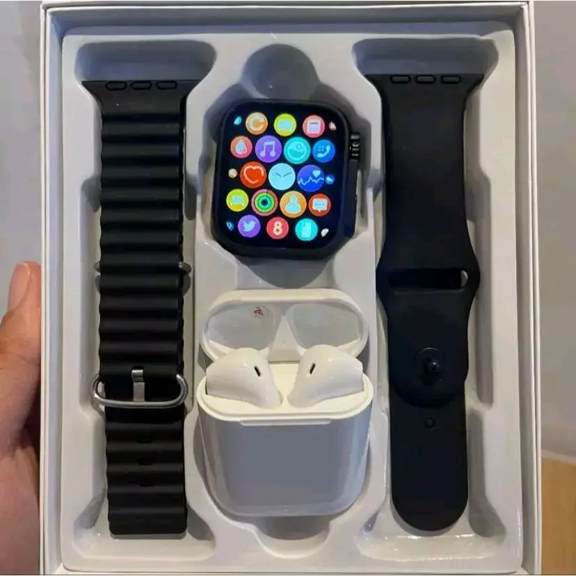 Jam tangan 2 Tali Plus Earphone TWS Full Layar ADA Kalkulator Support Android Ios Dengan 2 Tali Gratis Dan Layar Penuh Smartwatch Bluetooth