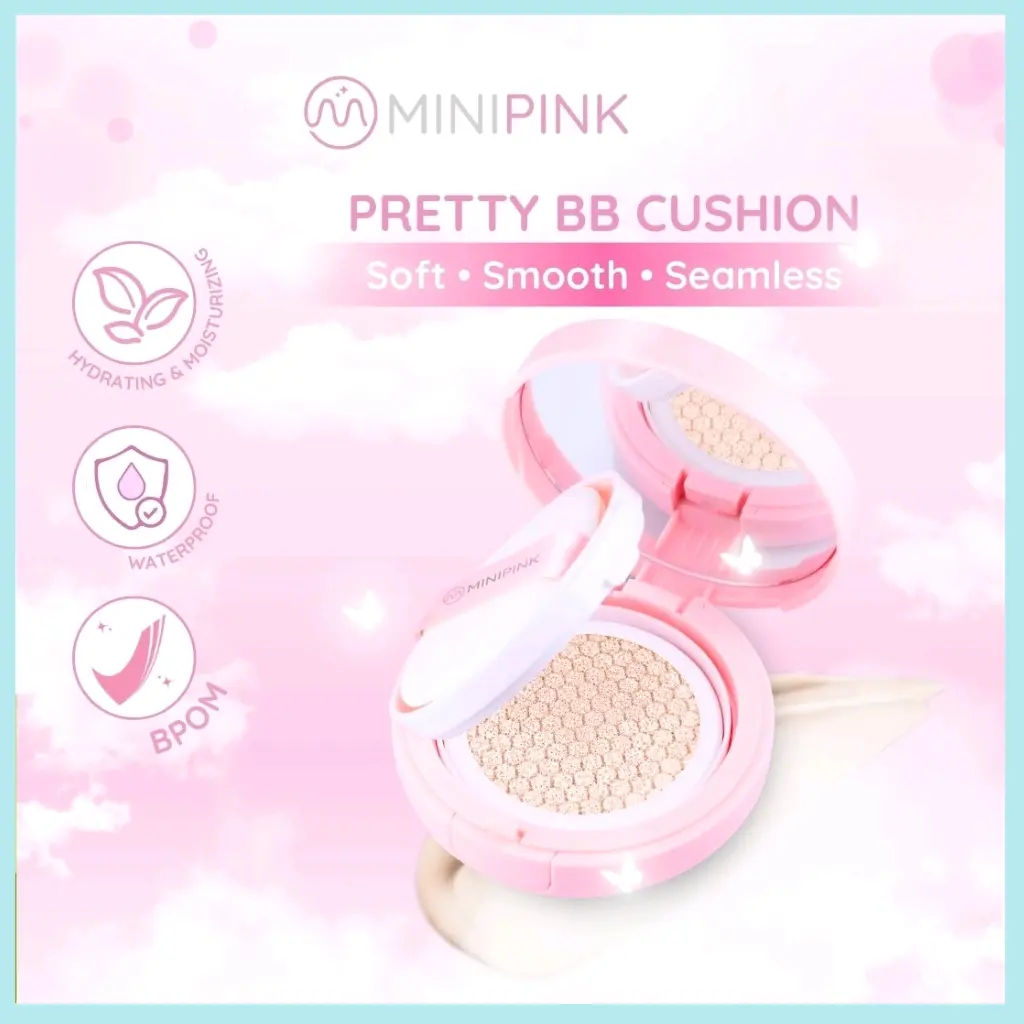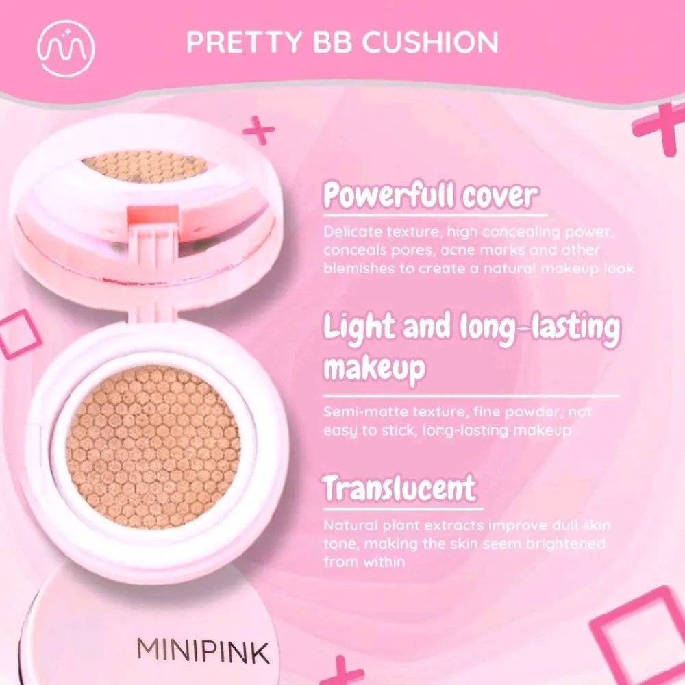MINIPINK Cushion Makeup Base adalah alas bedak praktis dengan hasil full coverage yang tampak natural dan flawless di kulit Wajah terlihat halus cerah dan segar sepanjang hari Cocok digunakan untuk aktivitas harian maupun acara khusus