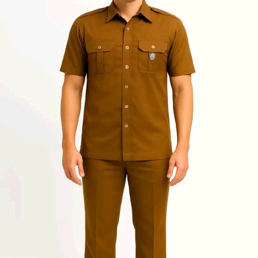 Seragam PNS stelan laki-laki ini adalah pilihan yang tepat untuk baju kerja pria. Dengan model klasik, kancing depan, dan saku samping, baju ini sangat fungsional. š