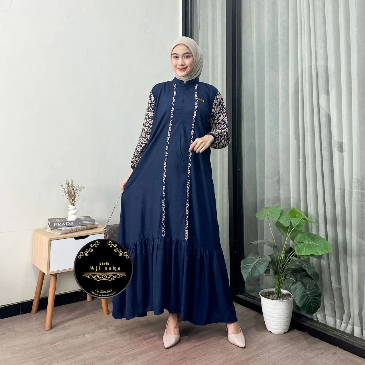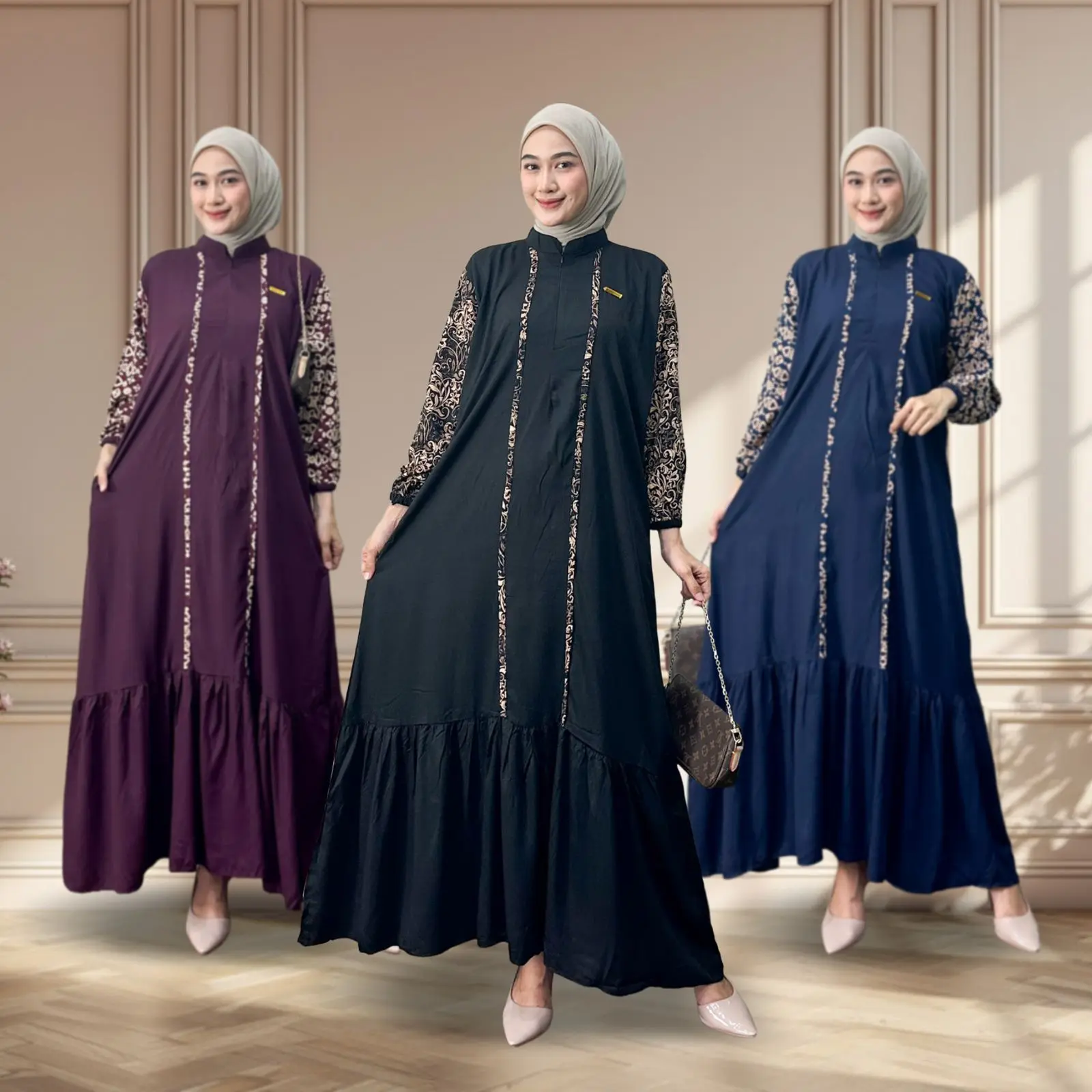 Gamis ini memiliki desain yang praktis dengan resleting depan. Bahan rayon twilnya membuatnya sangat nyaman dipakai. Cocok untuk ibu yang mencari pakaian yang nyaman dan praktis.