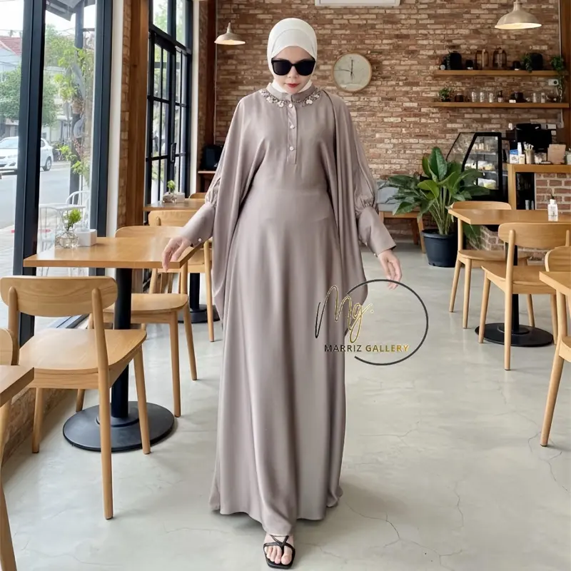MARRIZ - BAJU KAFTAN GAMIS GALABIYYA ELEGANT & MODERN BUSUI FRIENDLY WUDHU FRIENDLY BAHAN ARMANY SILK ADEM NYAMAN DI PAKAI KAFTAN RAYA KAFTAN LEBARAN
