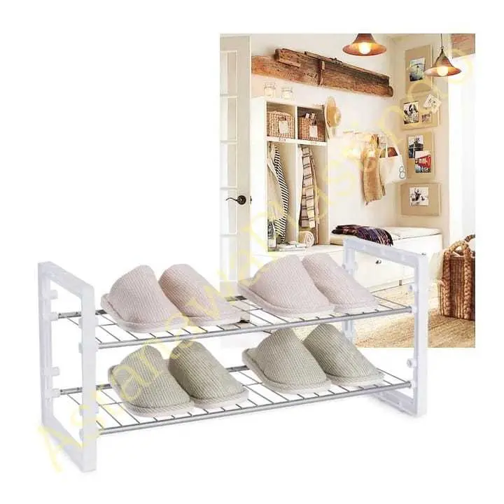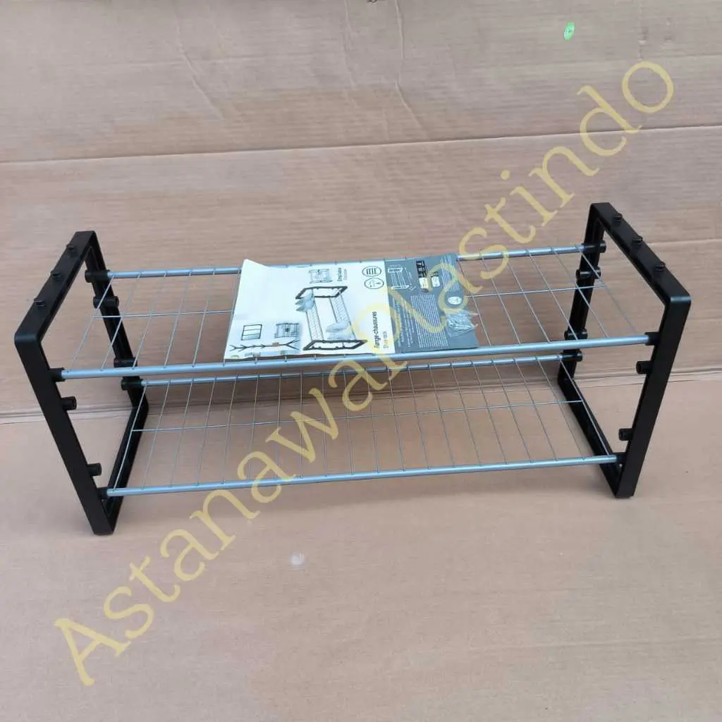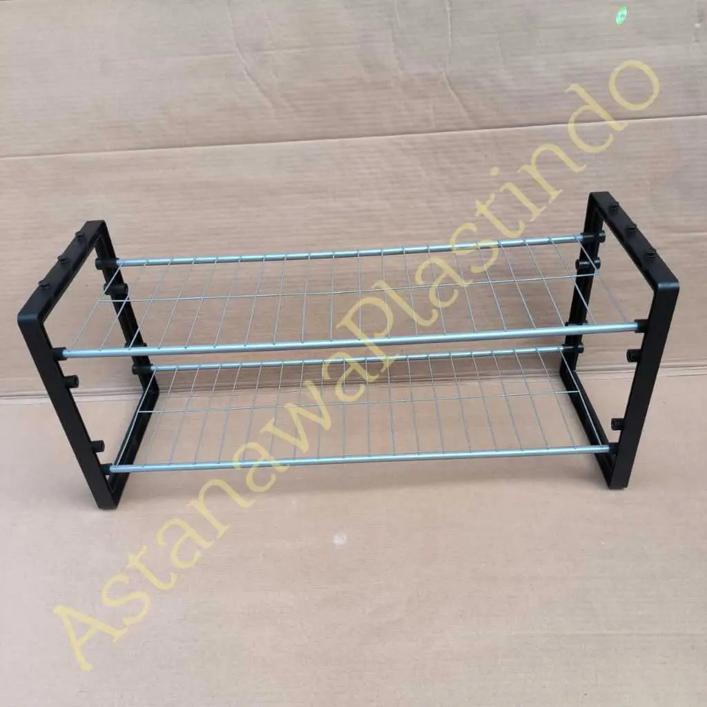 Rak Sepatu Stainless Steel Aesthetic 2 Susun Hitam