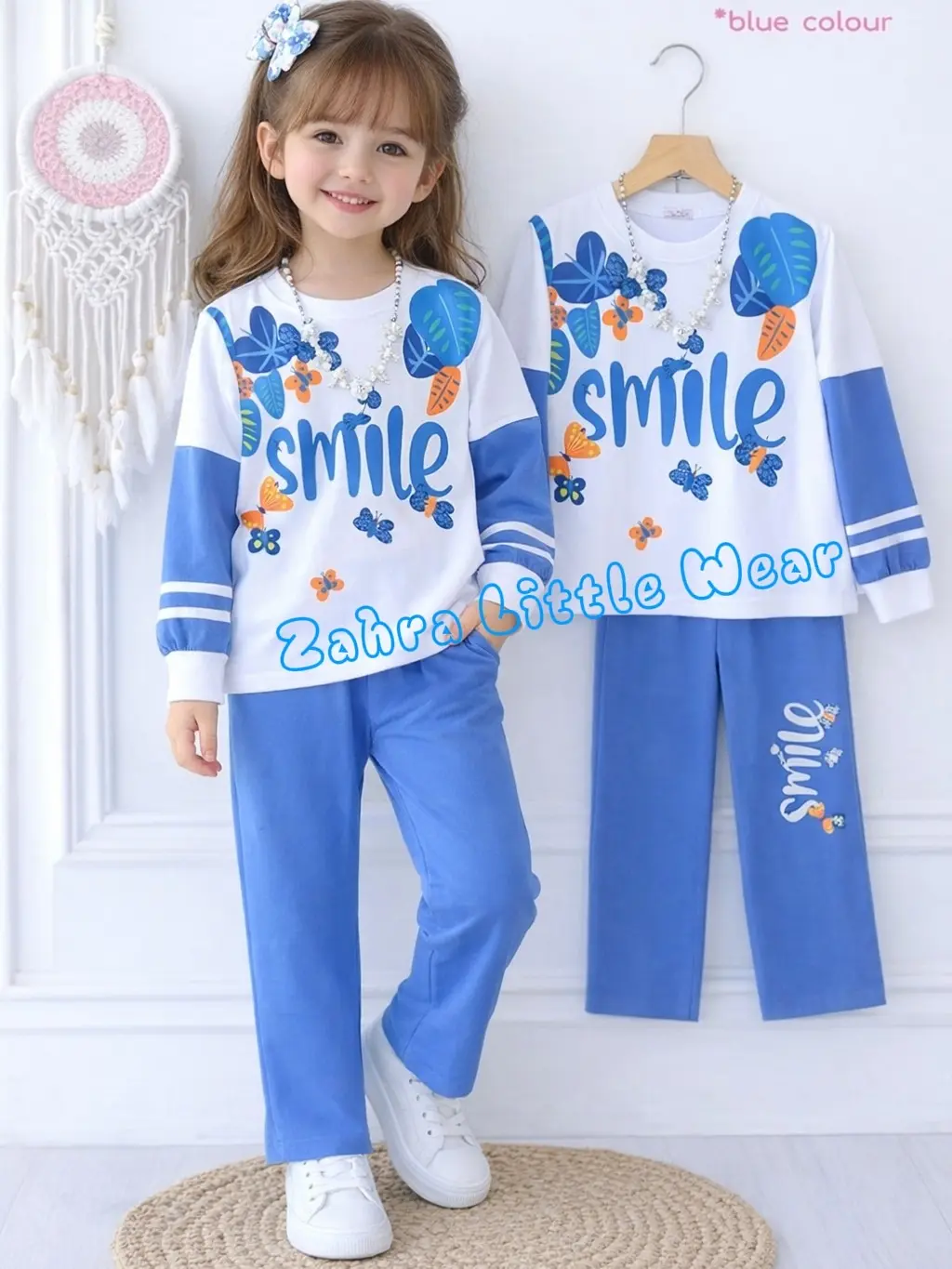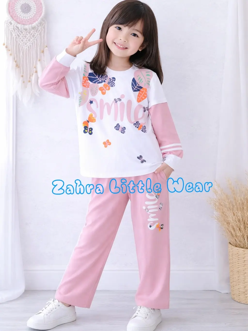 5. Zahra Little Wear Cod Setelan Sweater Smilee Anak Perempuan Outfit Viral Bahan Babyterry Tebal Adem Lembut Nyaman Usia 1-12 Tahun