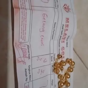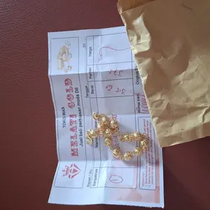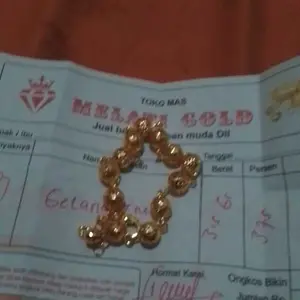 Sebenarnya sih ga percaya kalo ini emas. Tp bagus sih mirip emas beneran...emas 375 itu sekarang hrg sejuta lebih woy..cuma coba" beli..lumayan buat mengelabuhi tetangga julid
