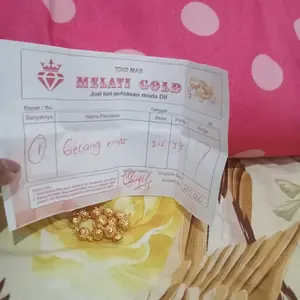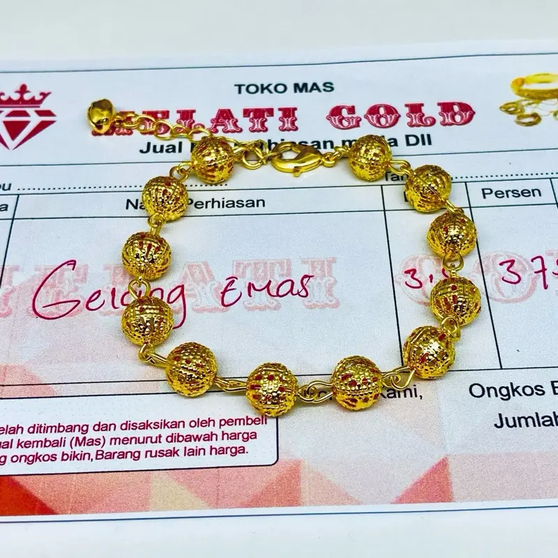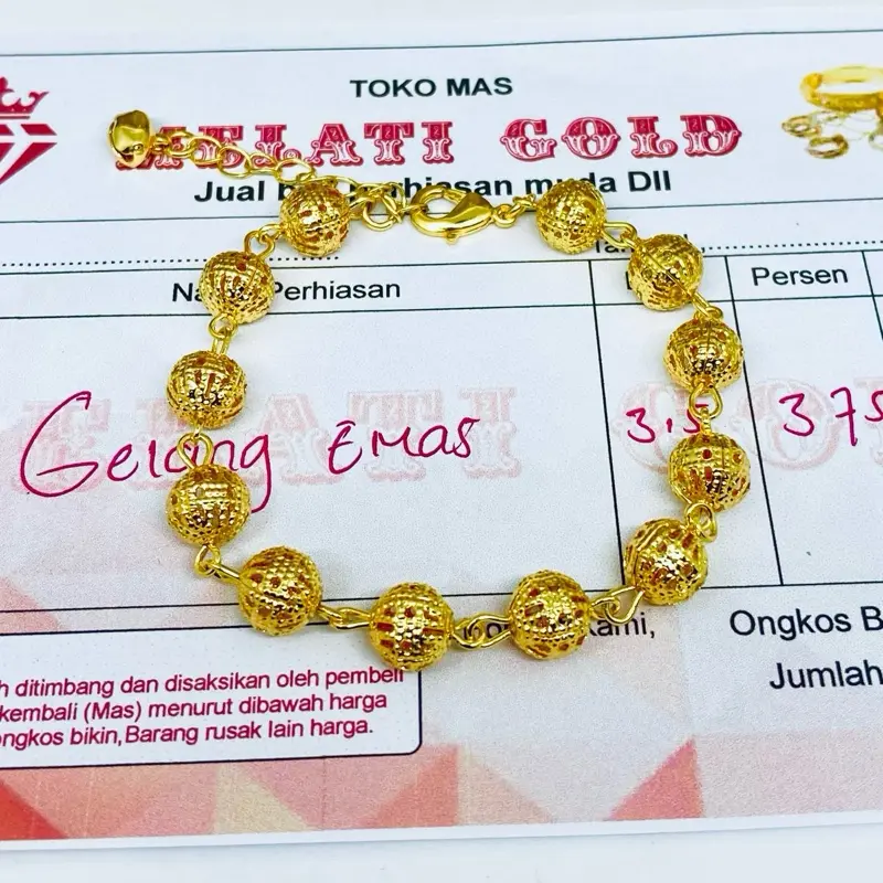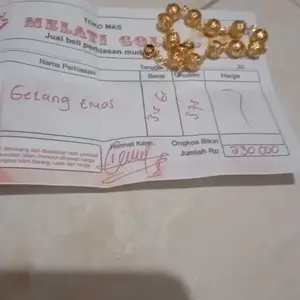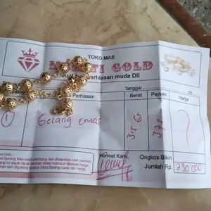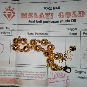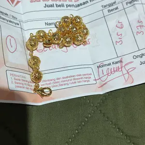 Gelang nya udah sampai, asli cantik banget kayak emas beneran, barang sesuai gambar makasih KK, gak kecewa belanja disini