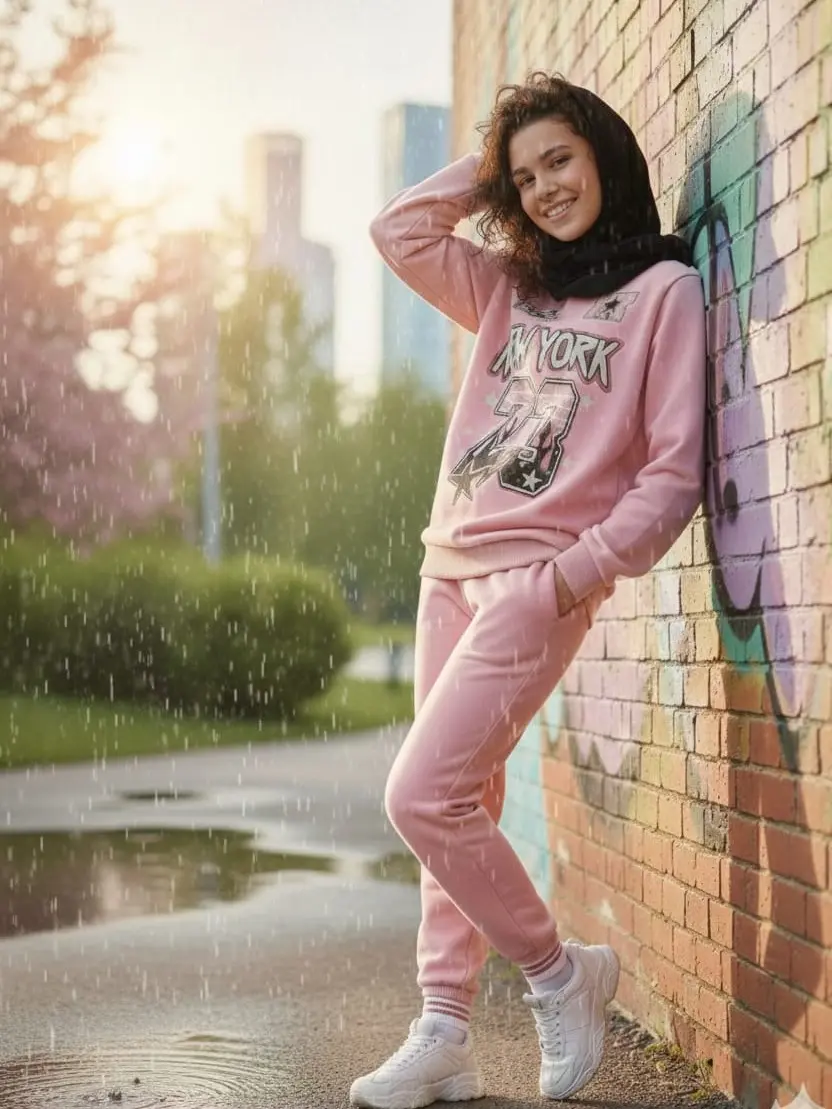 ✨ Setelan remaja perempuan dengan motif jersey bahan fleece tebal. Cocok untuk usia 9-14 tahun. Warna pink yang stylish membuat setelan ini tampak menarik. 🌸