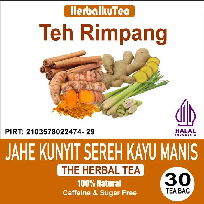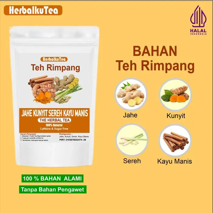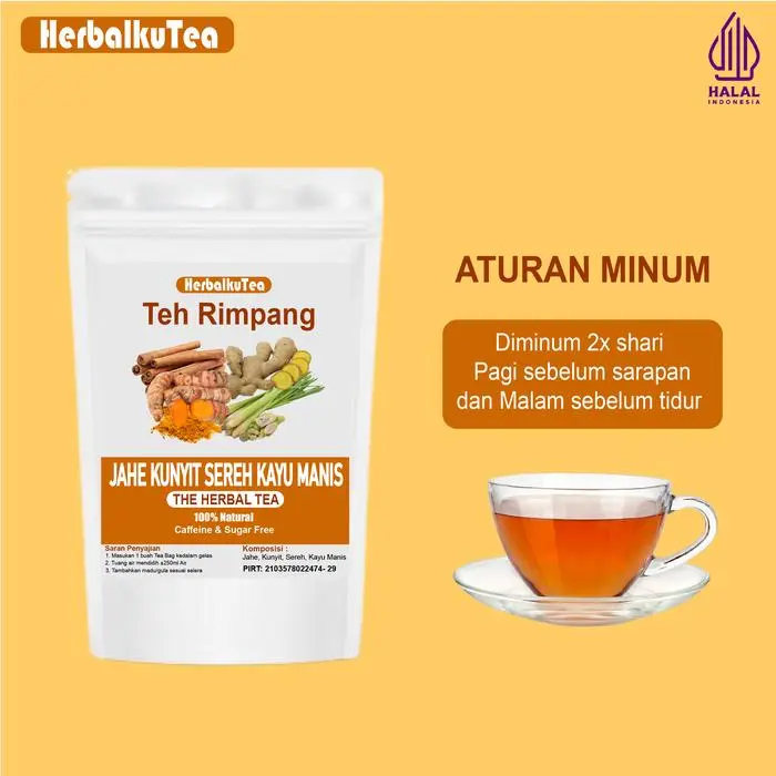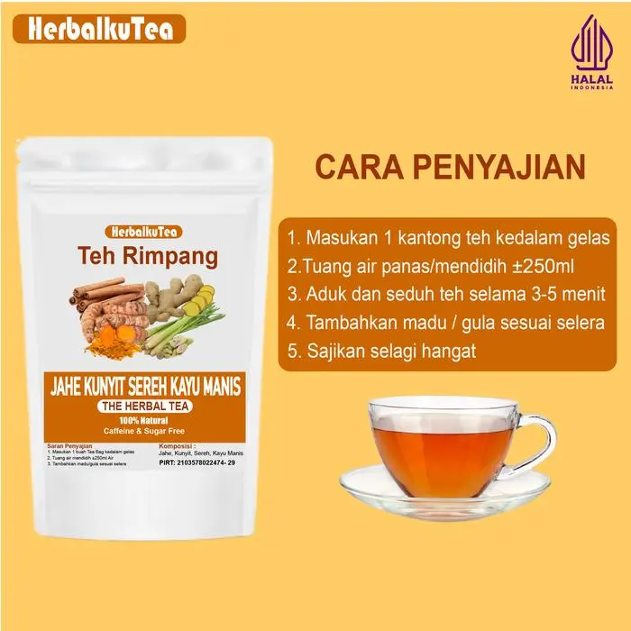 5. TERSEDIA - HERBALKUTEA - TEH RIMPANG JAHE KUNYIT SEREH KAYU MANIS ISI 3 TEA BAG