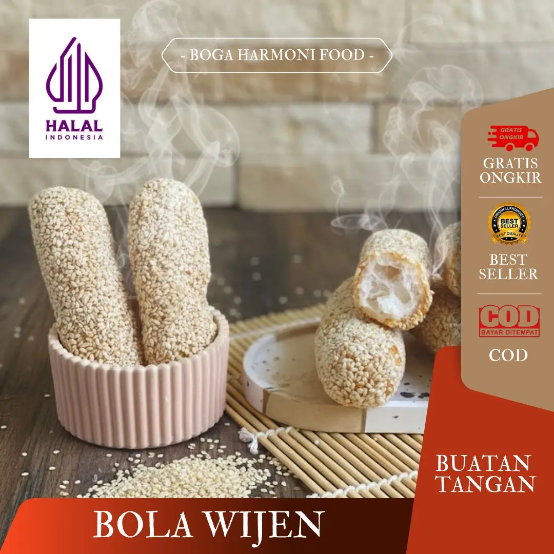 Berikut deskripsi lengkap dan keistimewaan jajanan sehat berupa bola-bola wijen yang bertekstur renyah dan terbuat dari bahan-bahan lokal berkualitas ini: