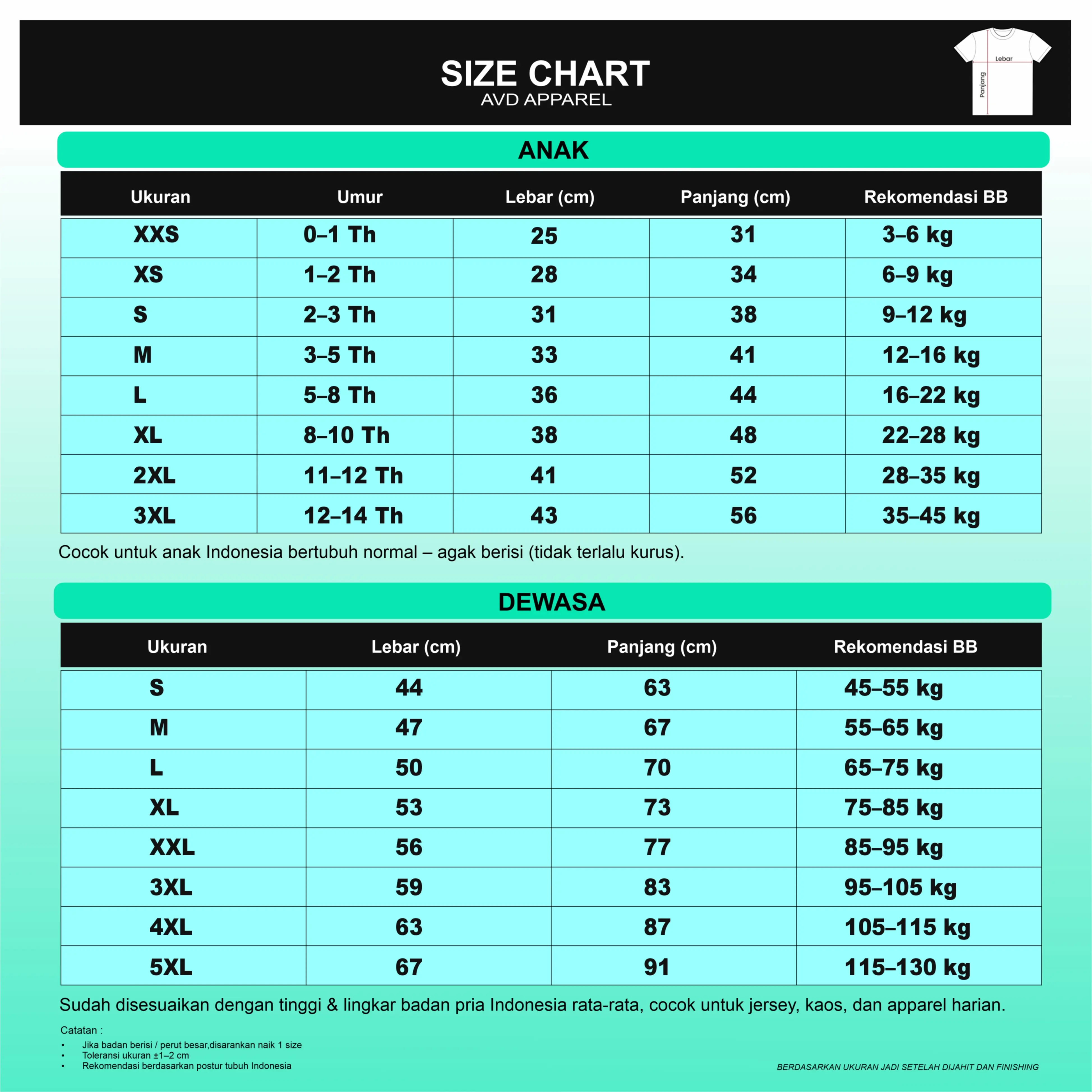 Size Chart Lokal (Anak-anak dan Dewasa)