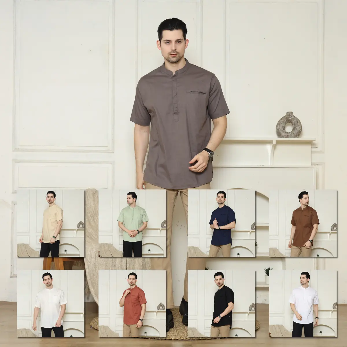 baju koko Pria Muslim lengan pendek Kain katun madina Sultan