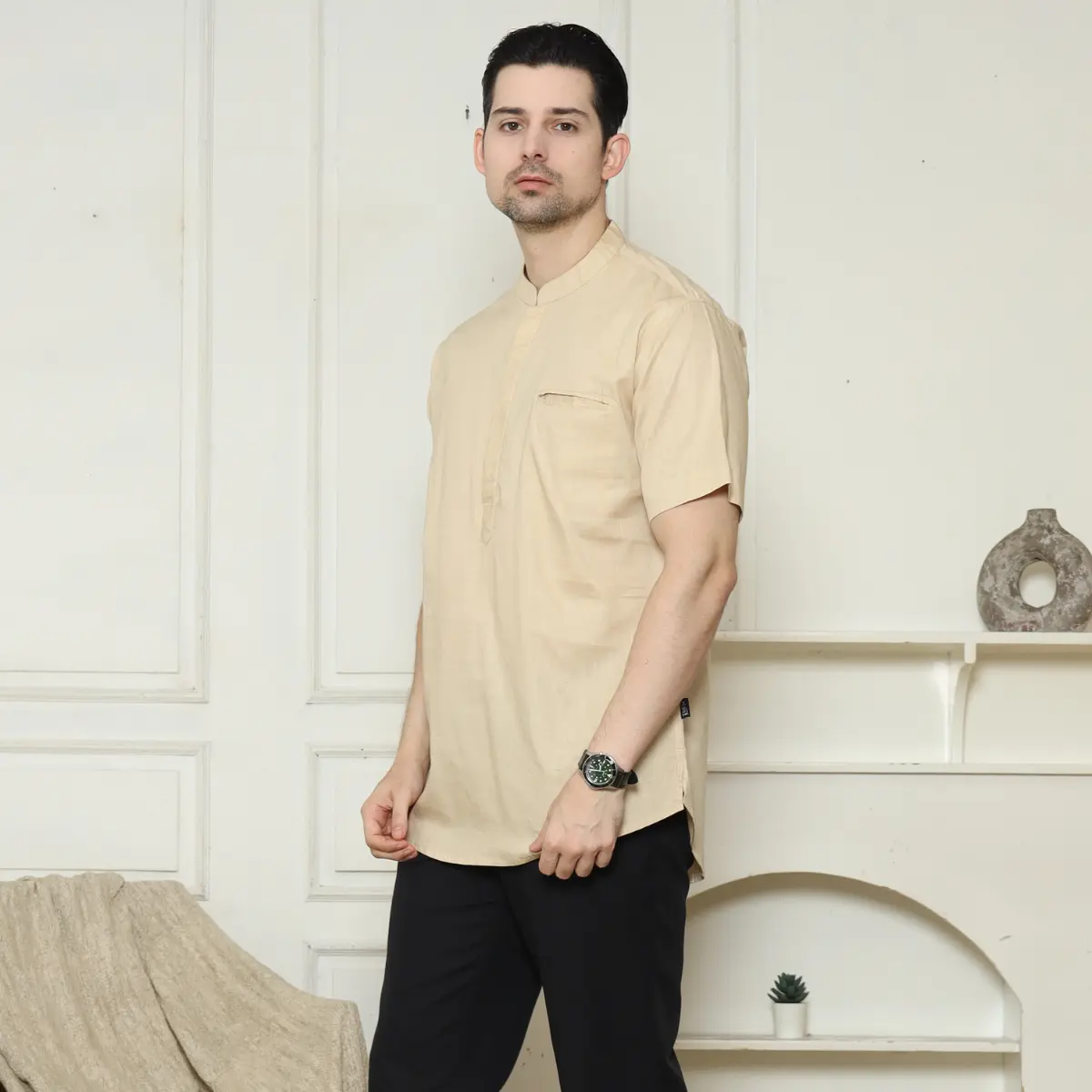 Tampil Elegan dalam Kesederhanaan hadir dengan desain Popover yang modern, kemeja koko dengan definisi dari gaya minimalist luxury. Menggunakan material premium Katun Slub Vinice, koleksi ini menawarkan tekstur serat alami yang khas namun tetap memberikan kenyamanan maksimal untuk penggunaan sepanjang hari.