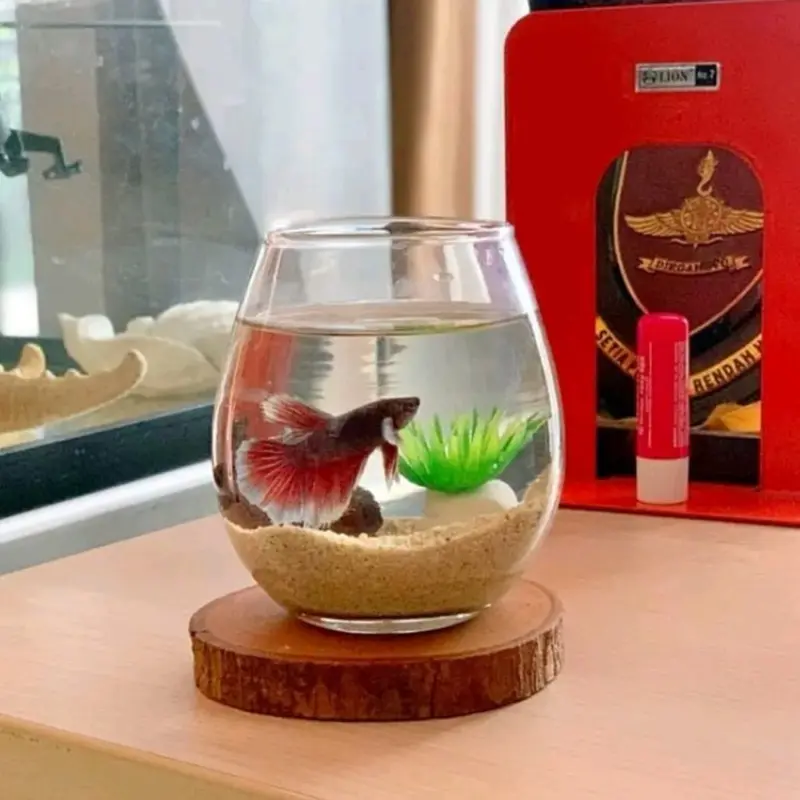 Akuarium mini cocok untuk hobi cupang dan ikan kecil lainnya. Dapat juga