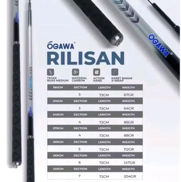 5. Ogawa Tegek Rilisan Panjang 210 270 dan 300 Material Carbon Action Hard Karet Bakar X-Wrap