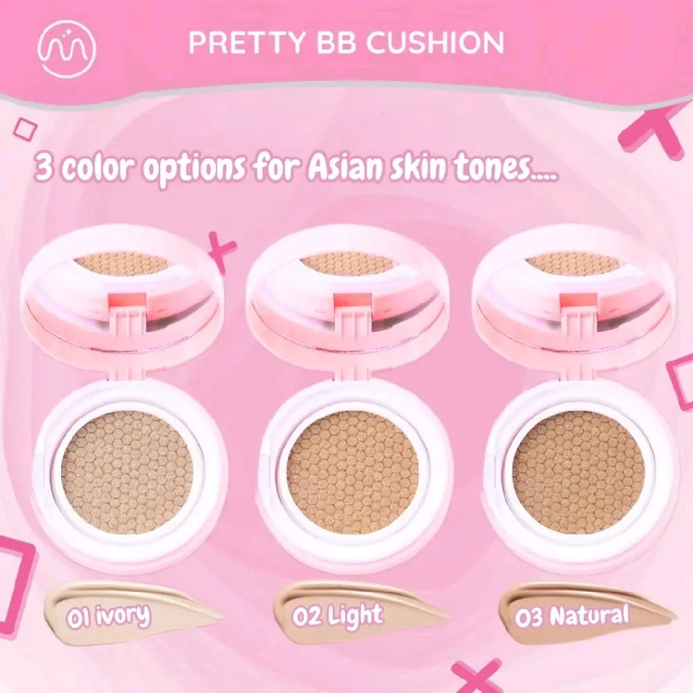 MINIPINK Pretty BB Cushion Makeup Base Wajah Full Coverage Natural Flawless Tahan Lama Lasting MP031