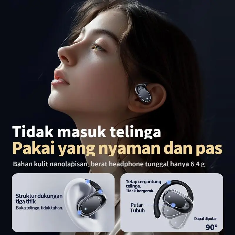 Desain ergonomis.Tidak ada perpindahan saat berlari dan melompat Dirancang khusus untuk ergonomi olahraga, satu earphone beratnya 6,0g dan lebih pas diliang telinga,tidak bergeser saat berolahraga,dan nyaman dipakai sepanjang hari.