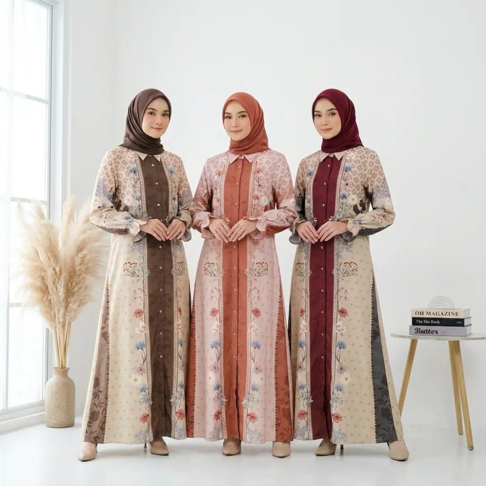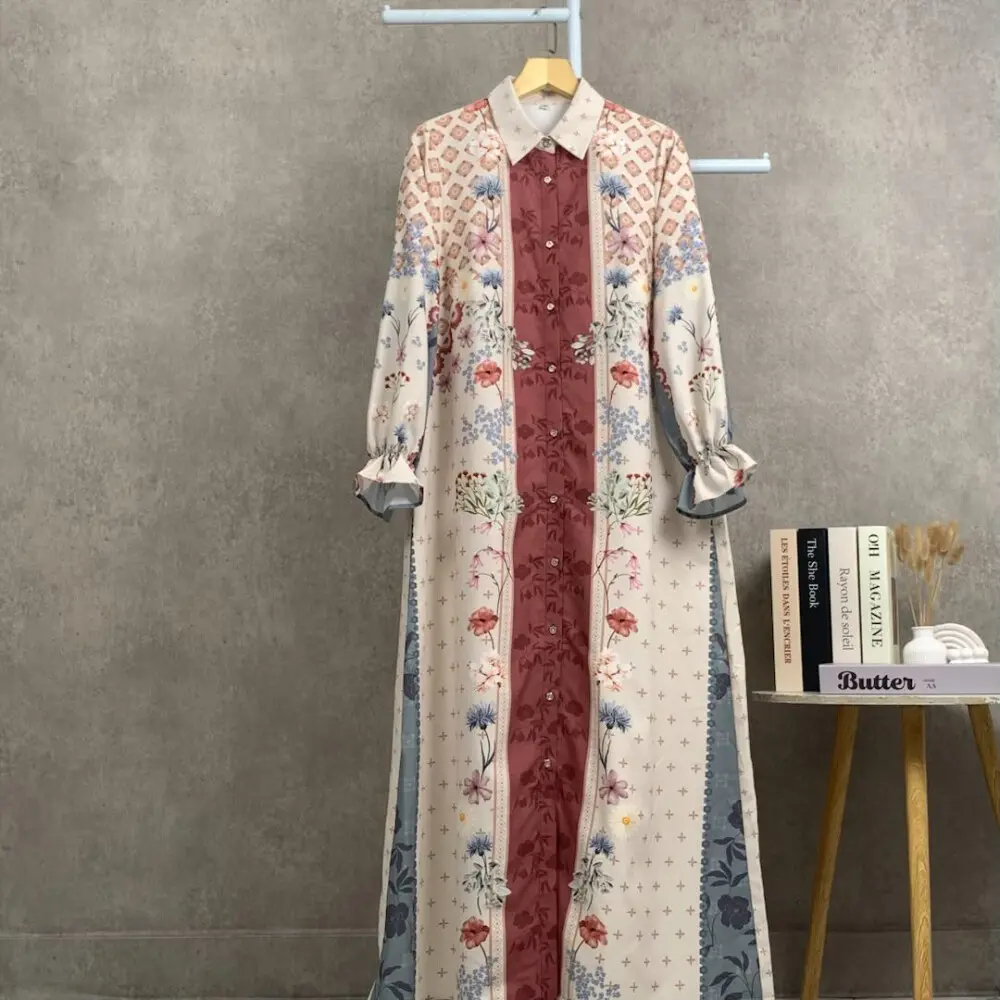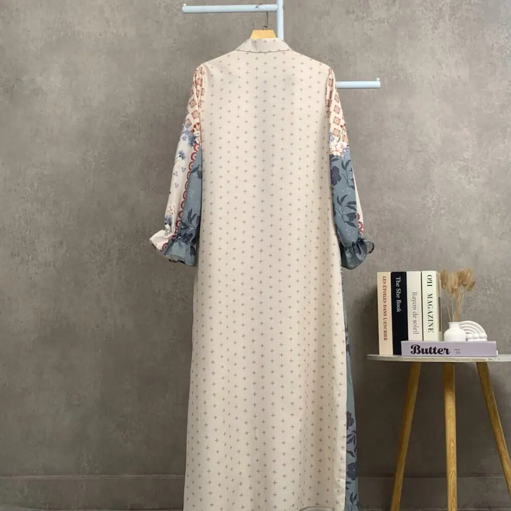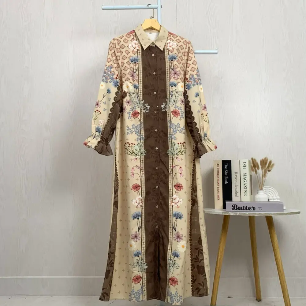 Asaya Gaun elegan dengan motif posisi mode lengan panjang