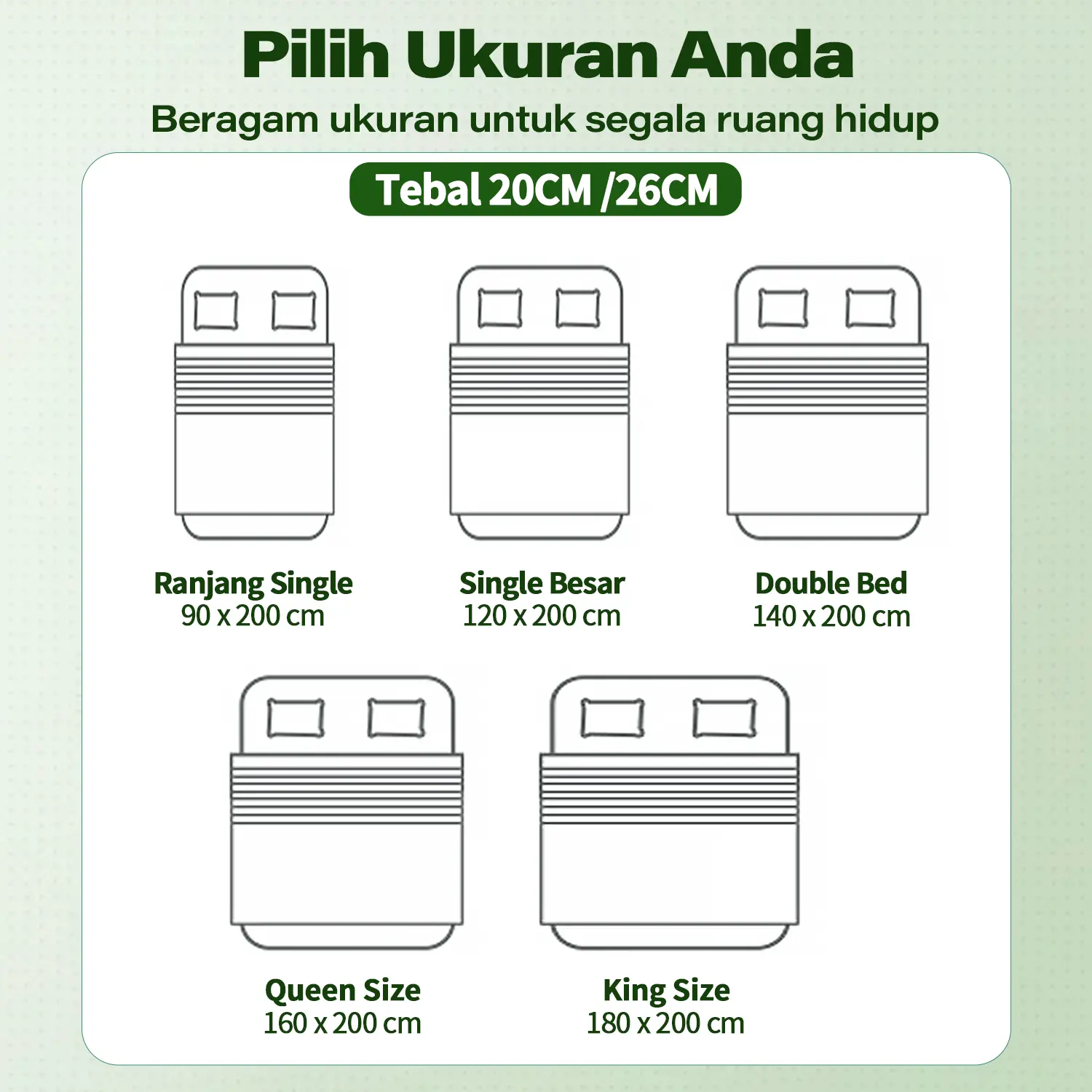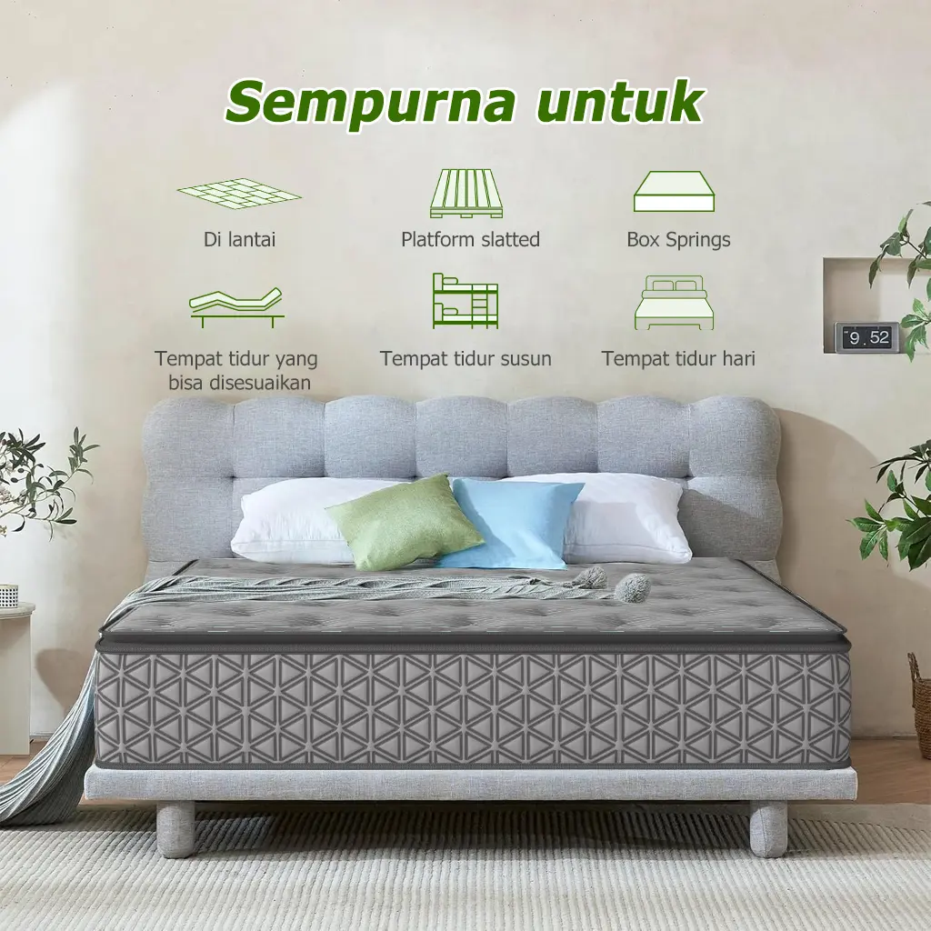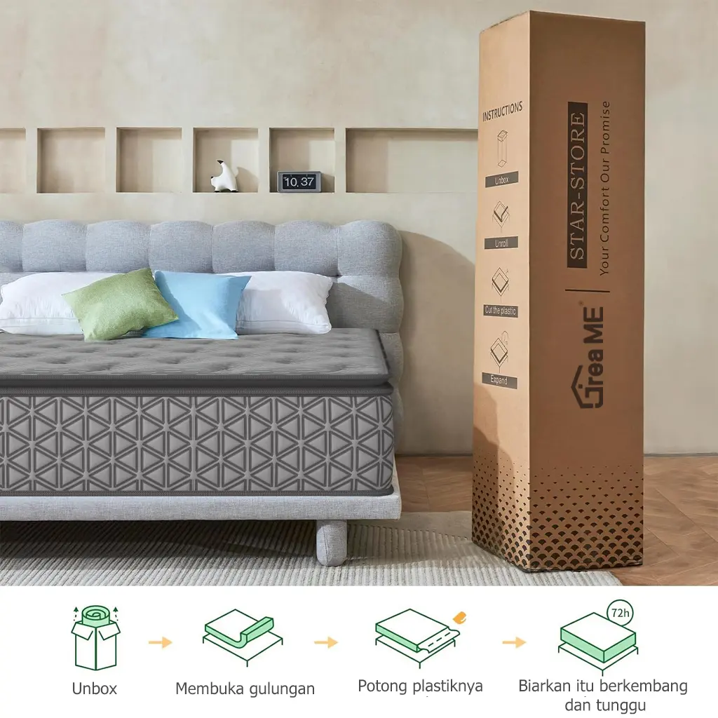 - Produk yang dijual hanya kasur. Tidak termasuk dipan sandaran.