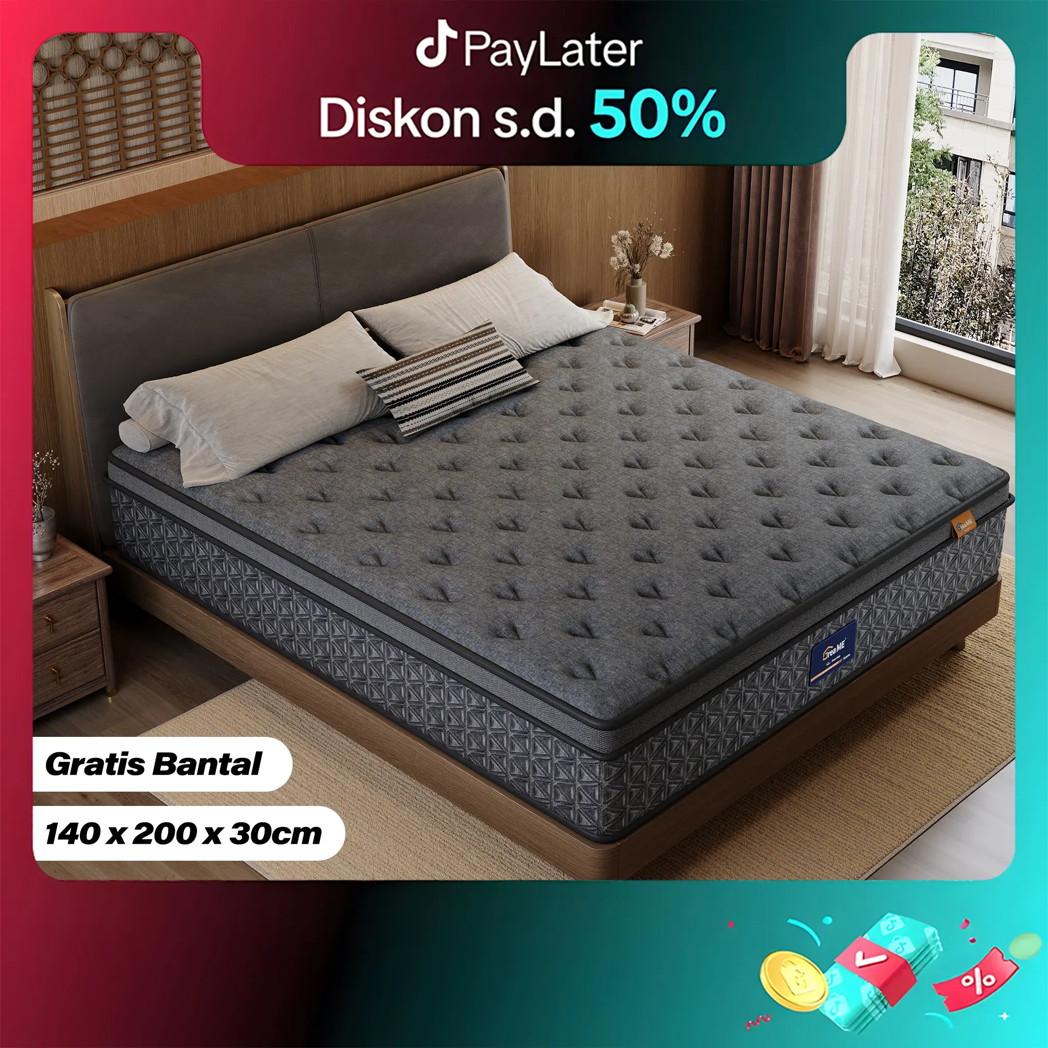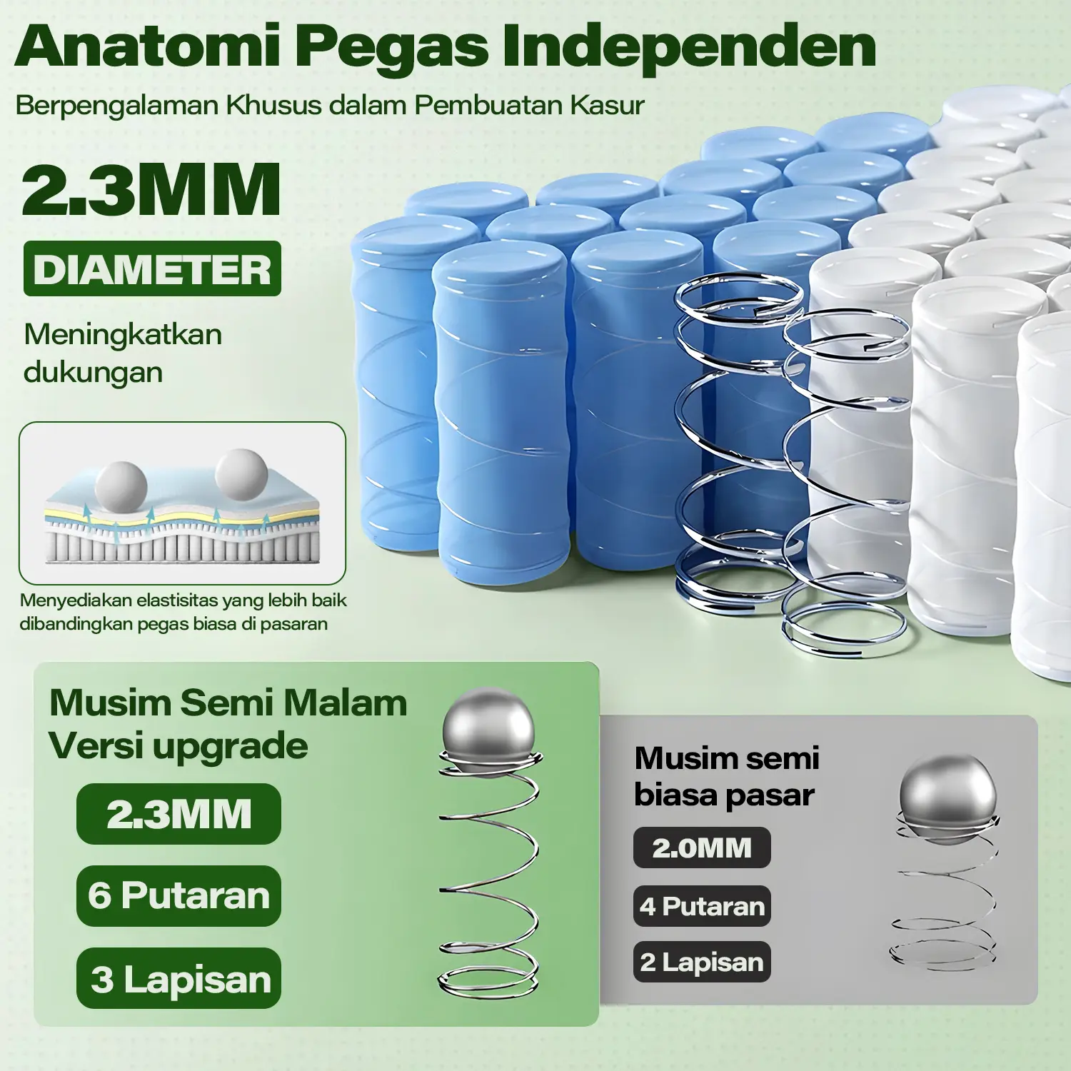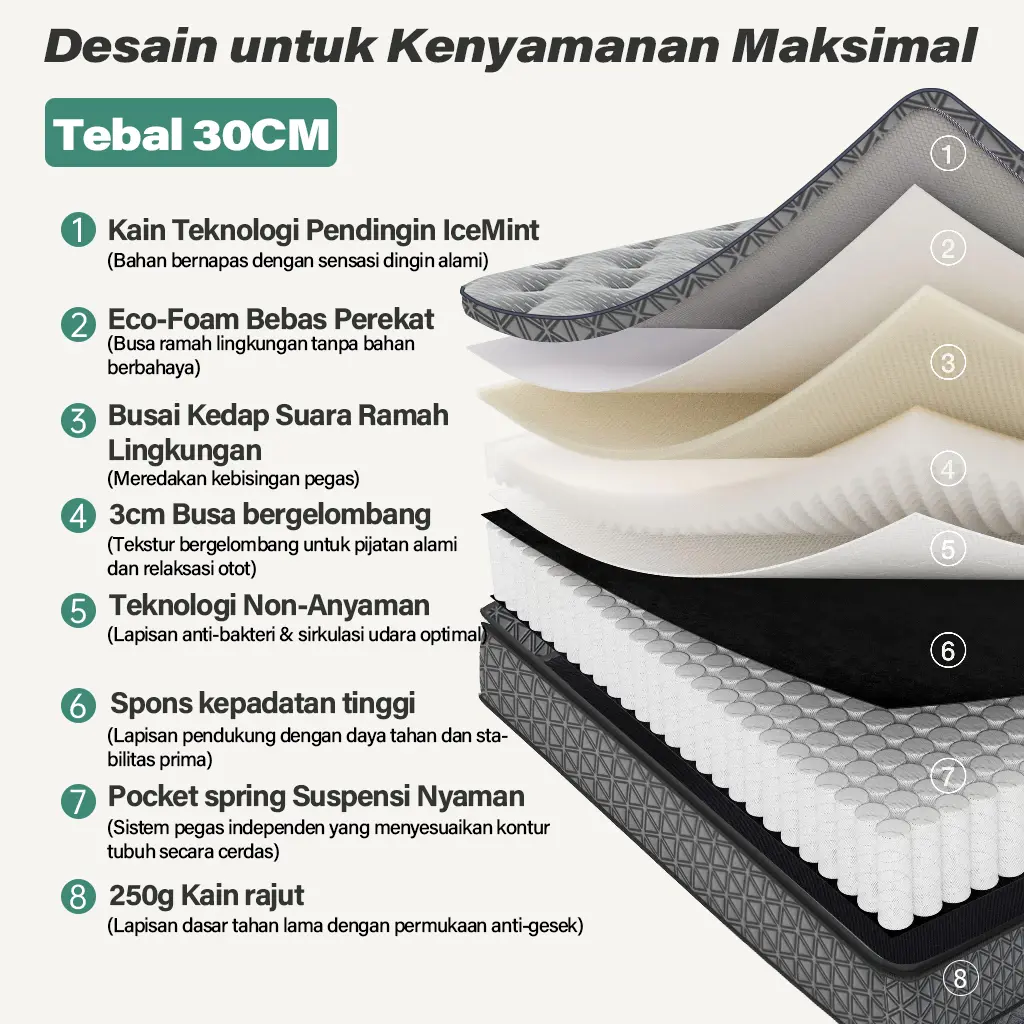 - Produk yang dijual hanya kasur. Tidak termasuk dipan sandaran.