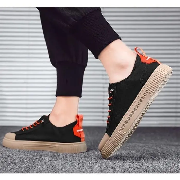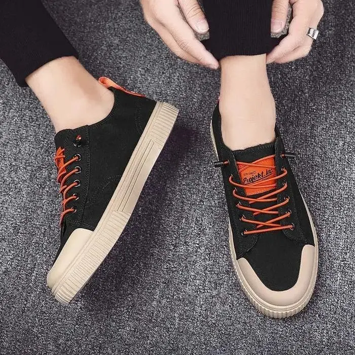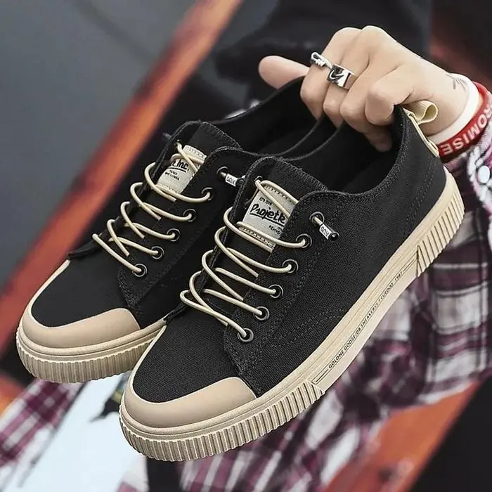 Sepatu Kanvas Pria Gaya Korea Nyaman Dan Elegan VENRON - Hitam Tali Krem, 41