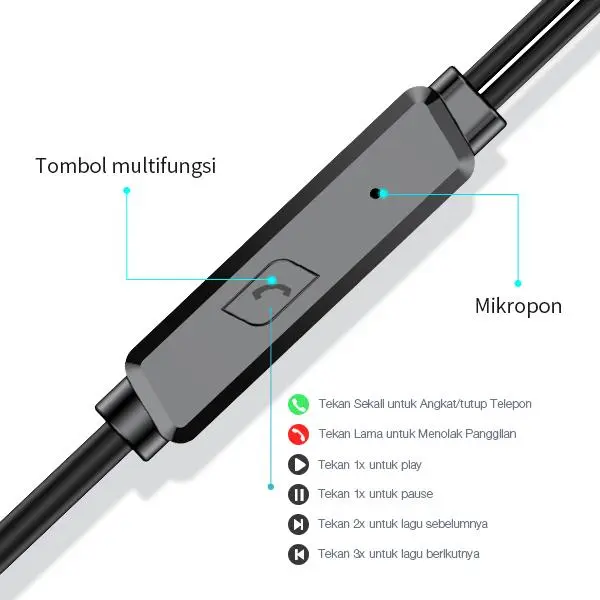 5. One button control terdapat mikrofon, mengontrol musik dan telepon lebih mudah.