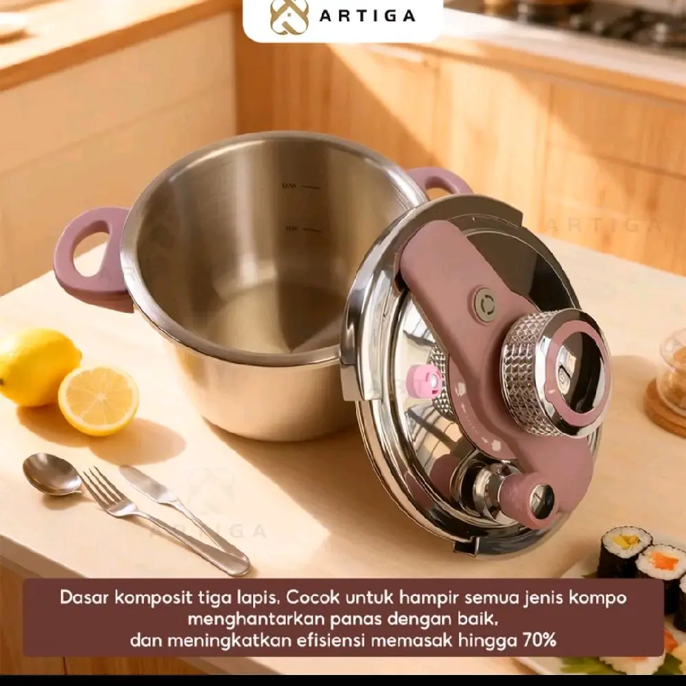 5. ARTIGA panci presto stainless dengan tutup pengunci putar