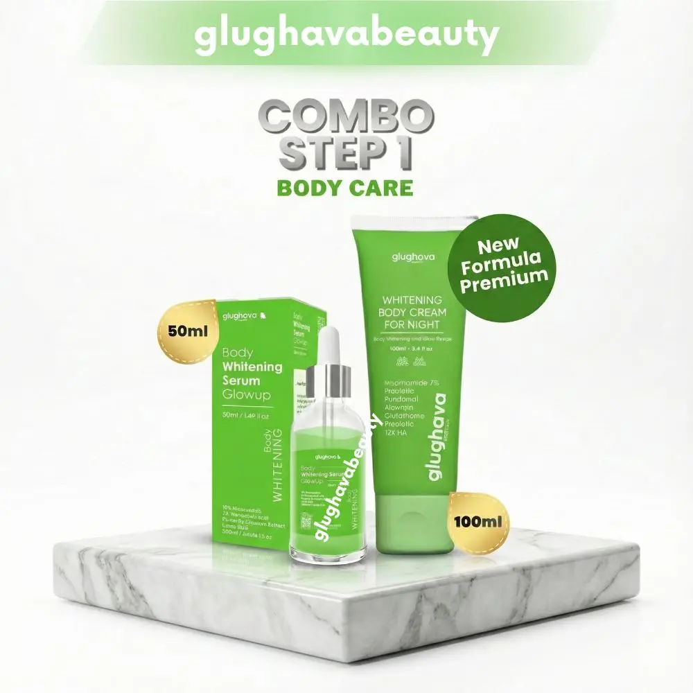 GLUGHAVA Paket Bundling Night Body Care - Body Serum Glow Up 50Ml + HB Ijo Whitening Body Cream Malam 100ml