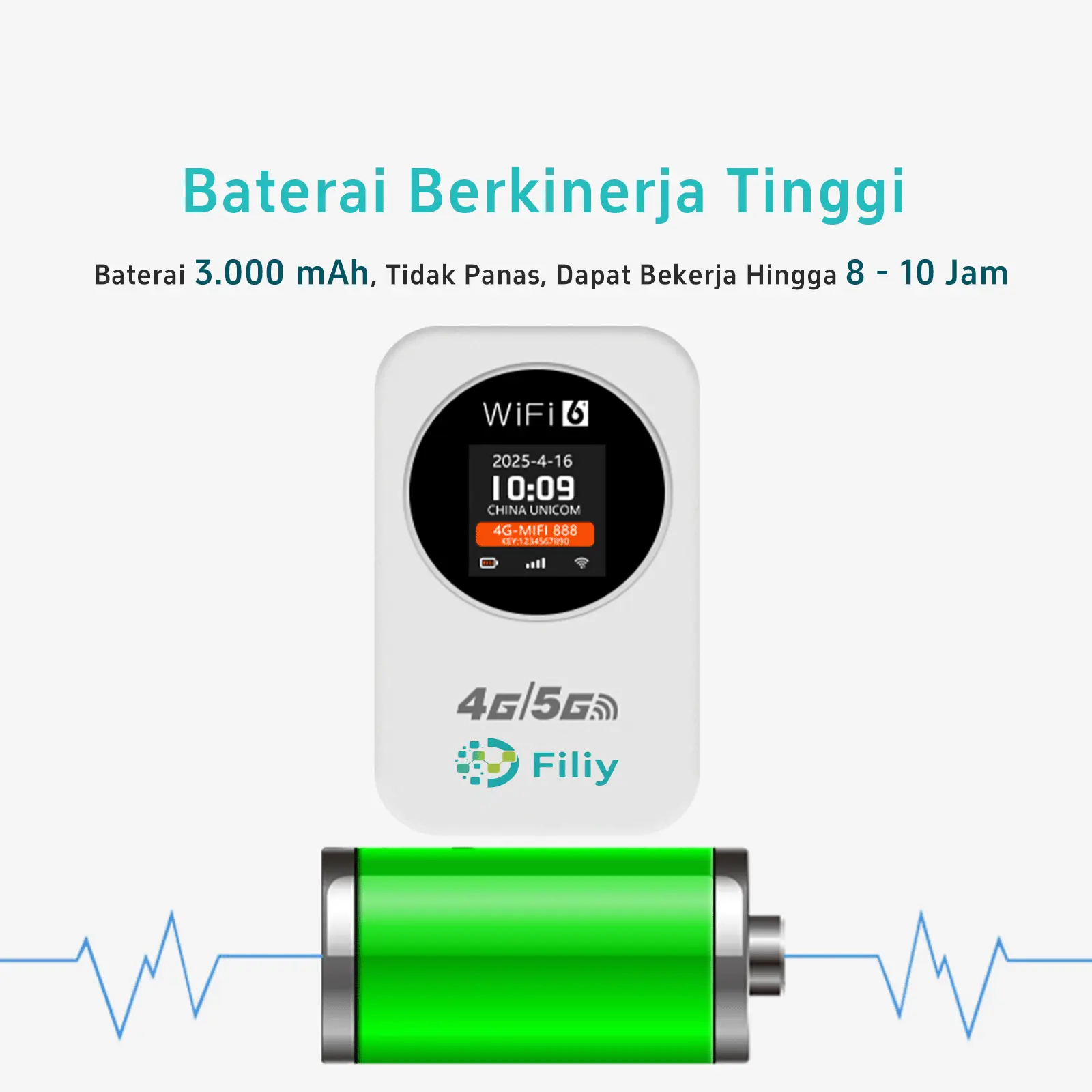 Baterai 3.000 mAh β Tahan 8β10 Jam
