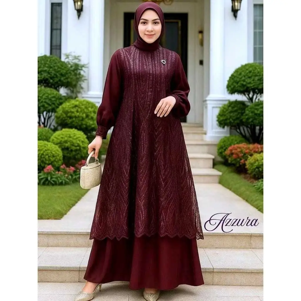 5. COD Azzura Dress Ceruty Babydoll Mix Brukat Premium // Gamis Kondangan Wanita Terbaru 2026 // Dress Wanita Muslim Jumbo M L XL XXL XXXL XXXXL // Busana Muslim Polos Kekinian // Fashion Wanita Muslimah // Baju Lebaran Wanita Populer // Model Terbaru 2026