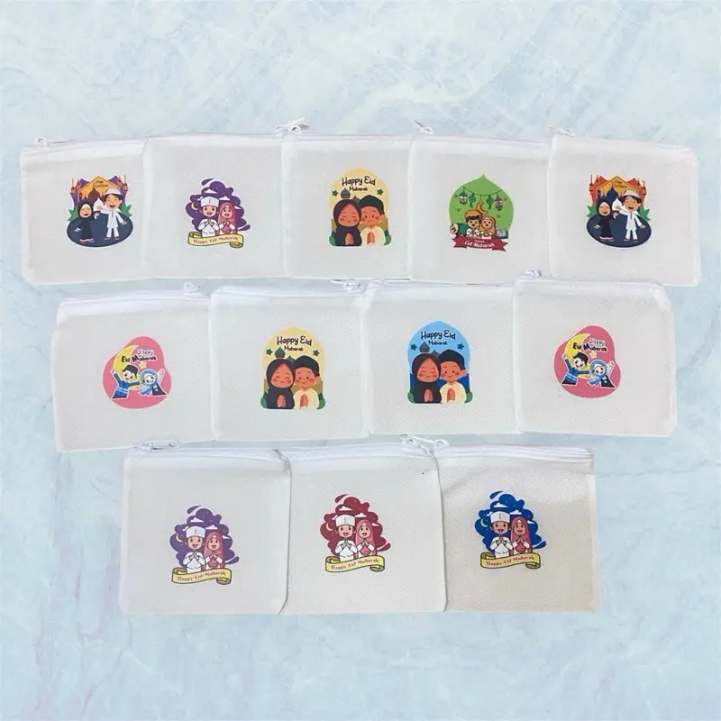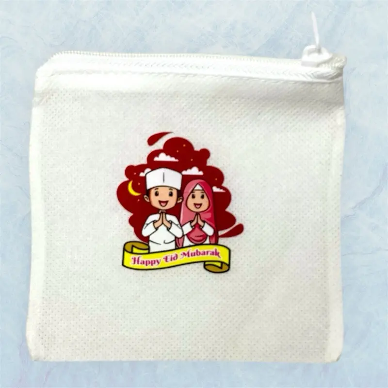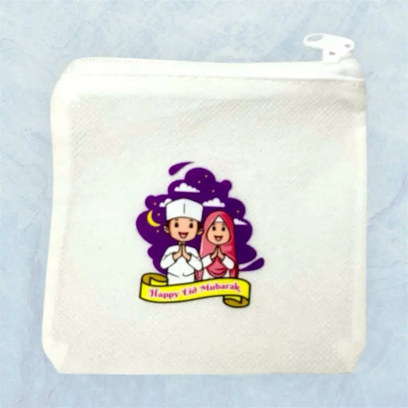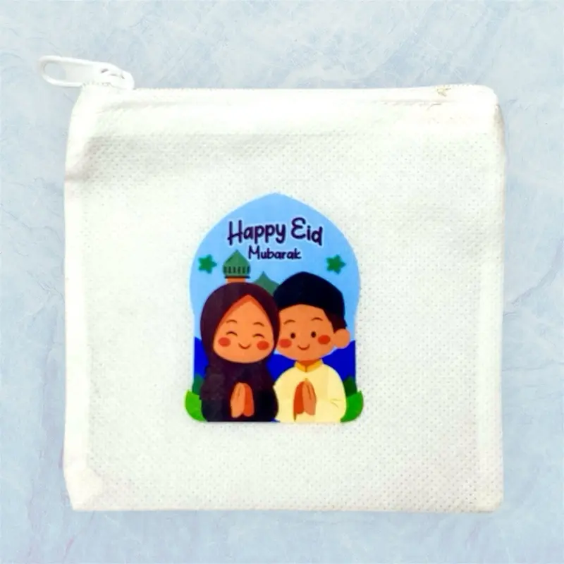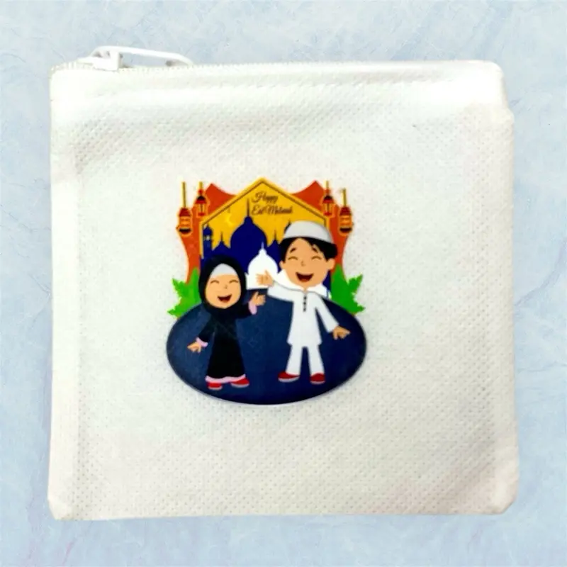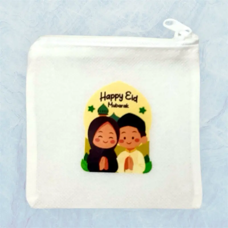 5. Dompet Koin Lebaran Resleting Model Kotak Sablon Jernih Bahan Sponbond Gramasi Penutup Resleting Uk 11 cm x 10 cm untuk Pouch Kecil Uang Koin Uang Kertas Permen dan Printilan Kecil Lainnya