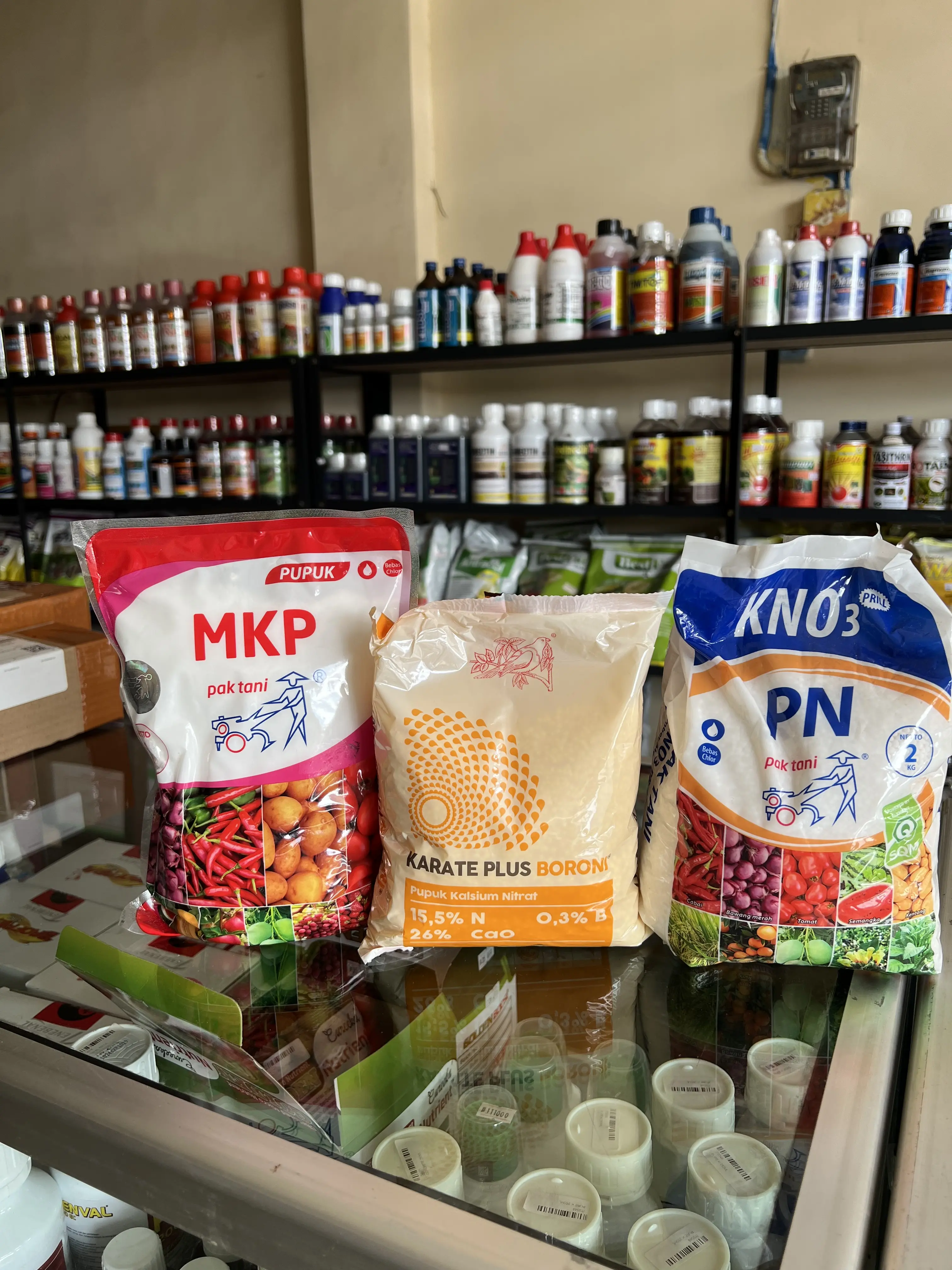 Paket Lengkap Nutrisi Tanaman ini berisi kombinasi pupuk MKP, KNO3, dan Karate Plus Boroni yang diformulasikan untuk memenuhi kebutuhan tanaman dari fase pembungaan, pembuahan, hingga pembesaran dan penguatan buah.