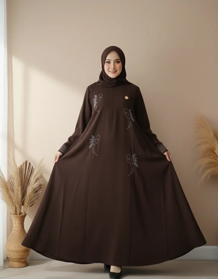 Gamis Abaya Sabrina Anti UV mewah dan elegan, dirancang khusus untuk wanita muslimah aktif. Terbuat dari bahan Sabrina Premium Anti-UV yang lembut, adem, dan jatuh indah. Cocok untuk aktivitas harian hingga acara spesial. 🌞