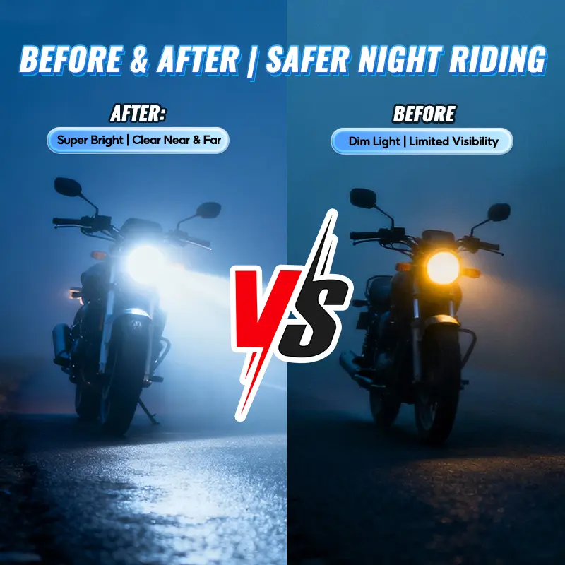 Cahaya Super Terang: Fluks bercahaya 6000 lumen, menerangi hingga 200 meter ke depan