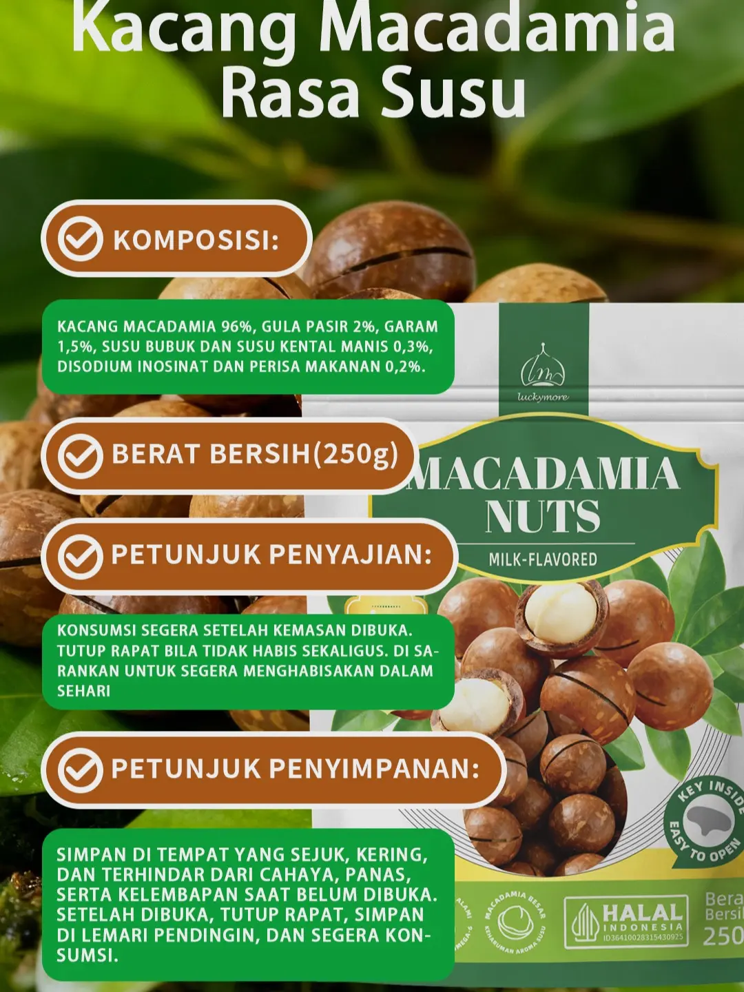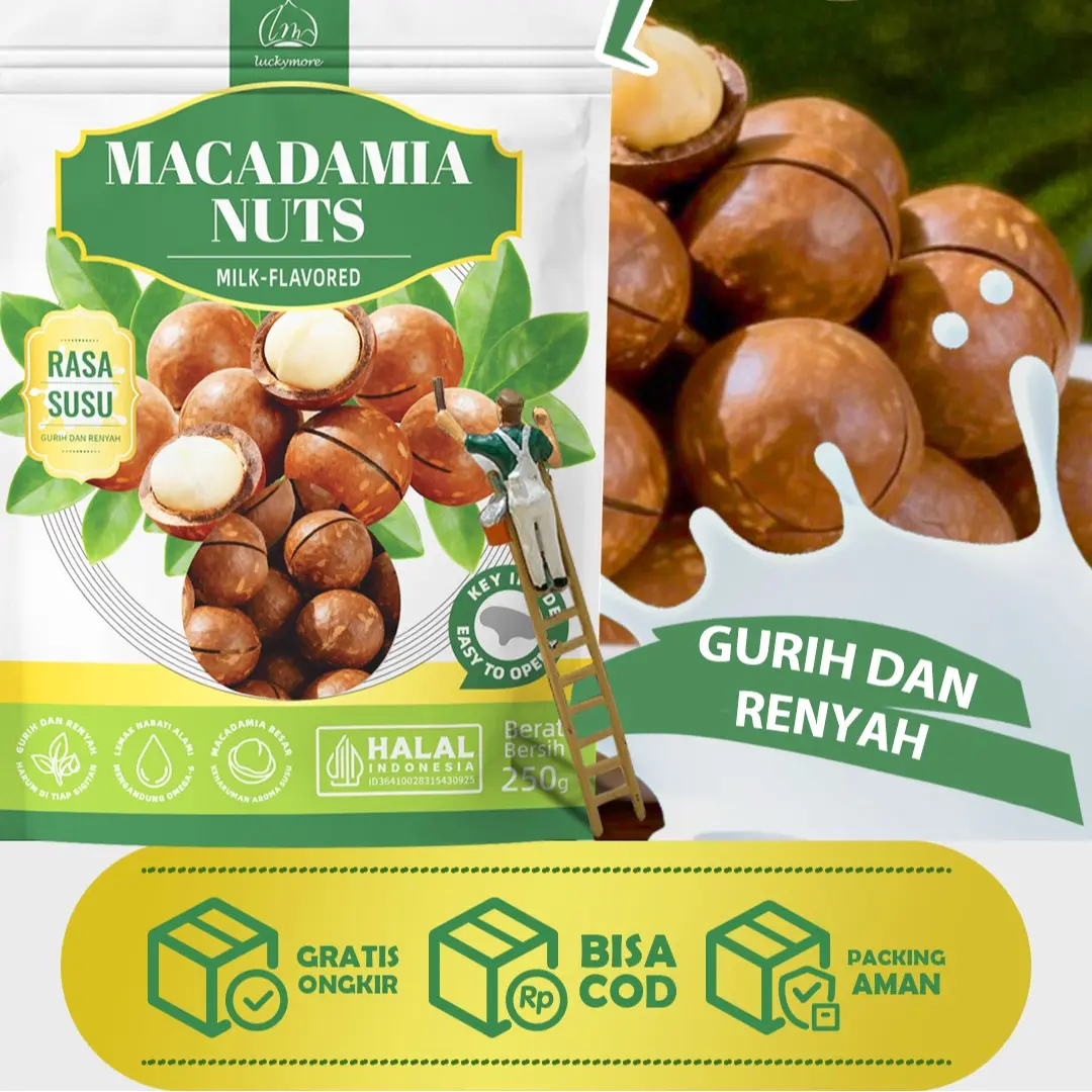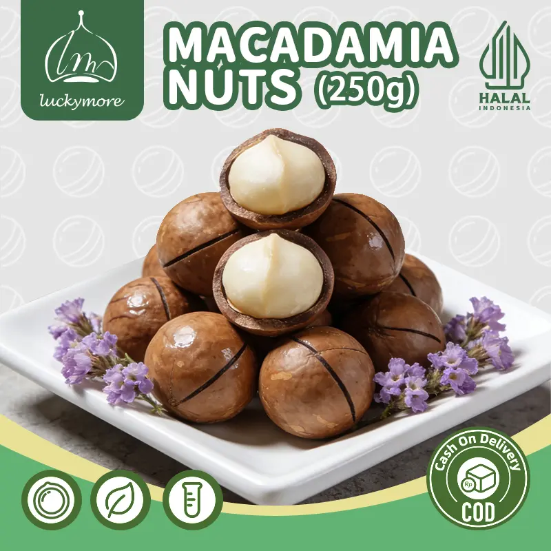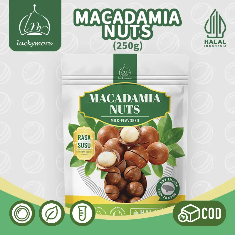 【Luckymore】Macadamia Nuts Rasa Susu 250gr HALAL Cemilan Sehat & Premium Tanpa Pengawet & Pewarna Buatan Tekstur Renyah Rasa Alami