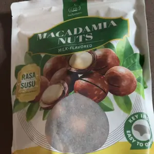 Macadamia ukuran besar dengan rasa susu yang gurih dan lembut. Renyah, harum, dan bikin nagih! Cocok buat camilan santai, nonton, atau stok di rumah.