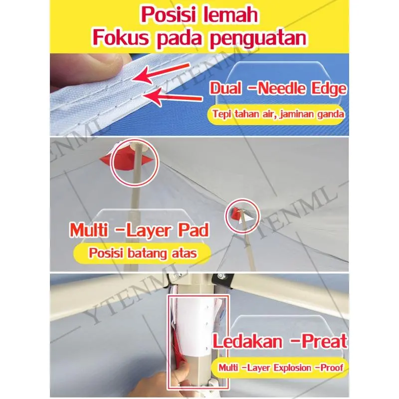 Detail produk dari Terpal Atap Tenda Anti Panas (Hanya Terpal Atap Saja) Lipat Kerai Kanopi Payung Tenda Camping Bahan Anti UV Tebal Kain Oxford Untuk Pantai Berkemah Mendaki 2x2 atau 3x3 2x3