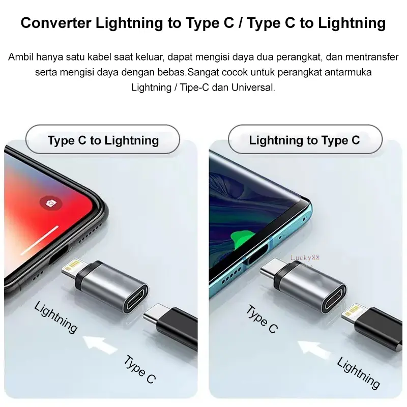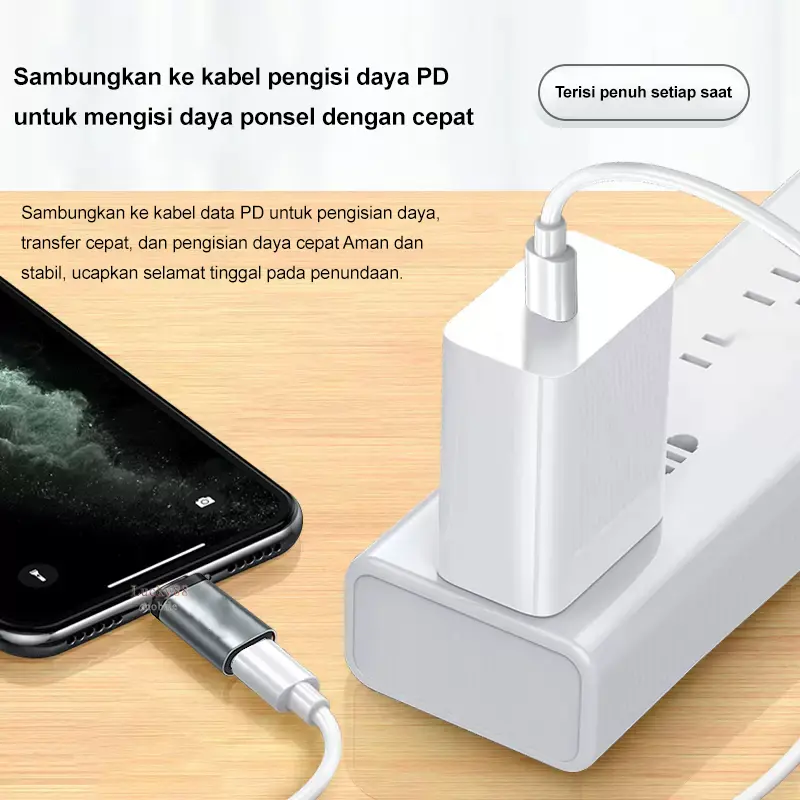 Adapter converter dari Lightning ke Type C . Dengan ini, Anda dapat menggunakan kabel Lightning untuk kemudian dihubungkan ke gadget / handphone yang memiliki port Type C.