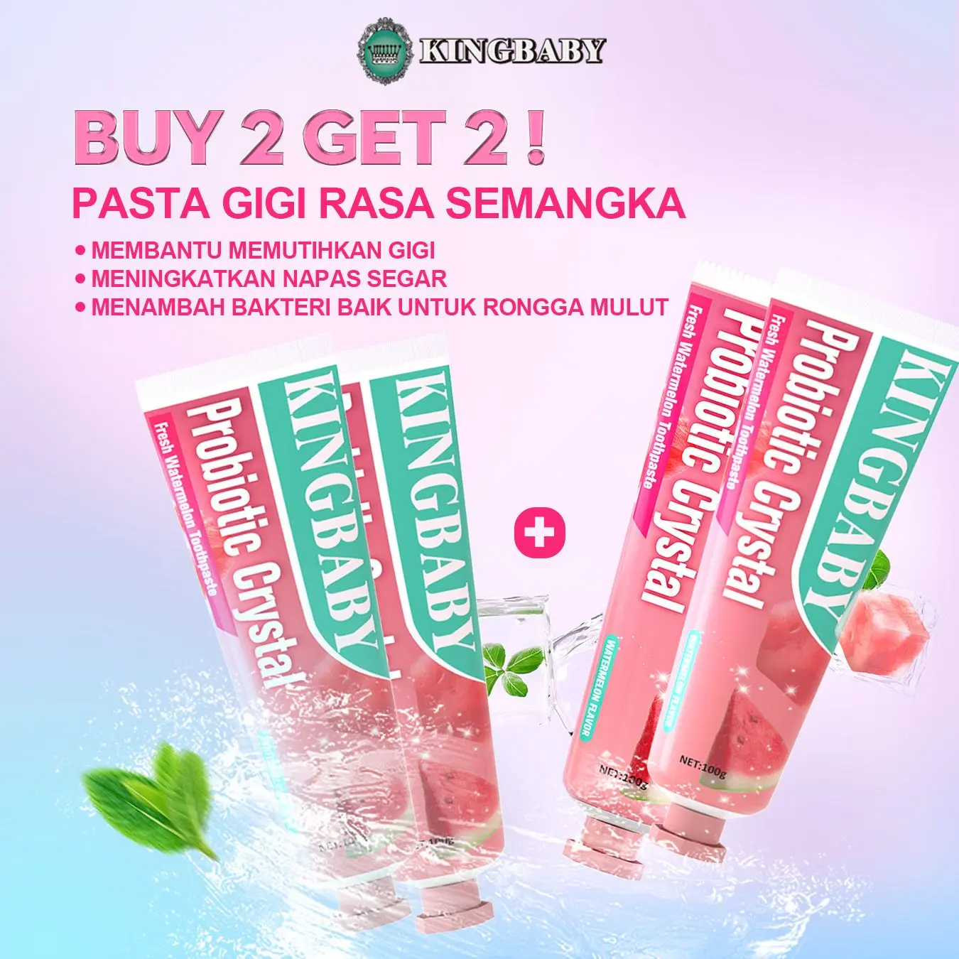 KINGBABY Probiotic Crystal Fresh Watermelon Toothpaste – BUY 2 GET 2