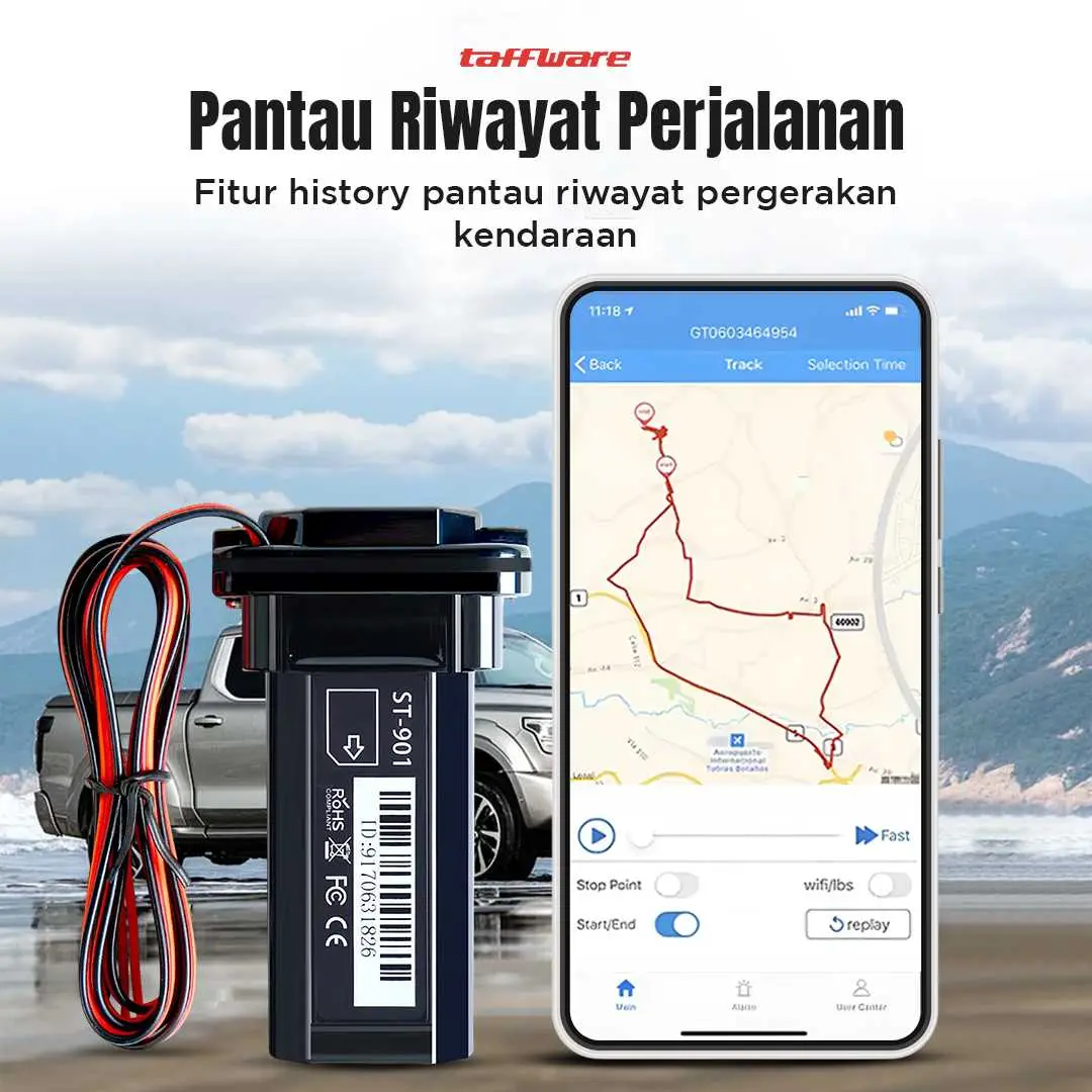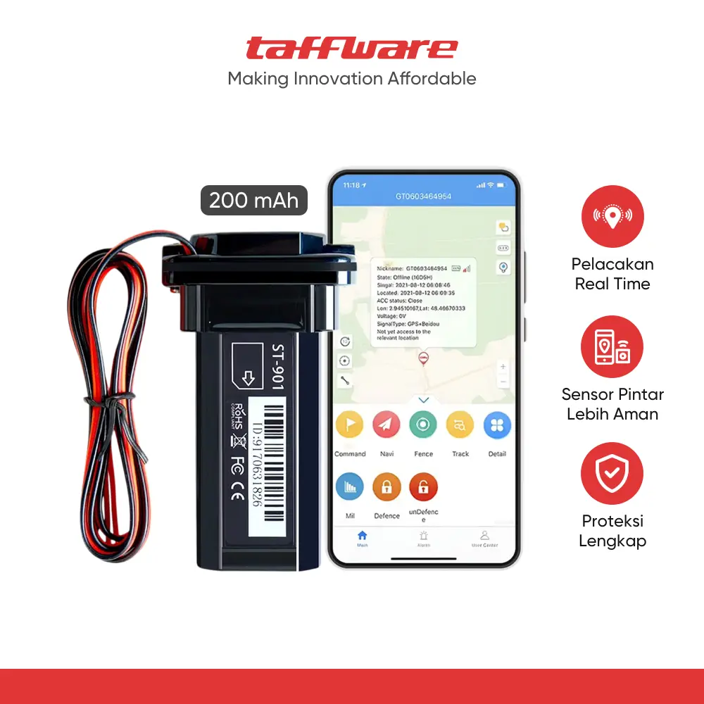 1 x Taffware LOCATREX Alat Pelacak Mobil Motor GPS Tracker Alarm 2G 12-90V - ST901A