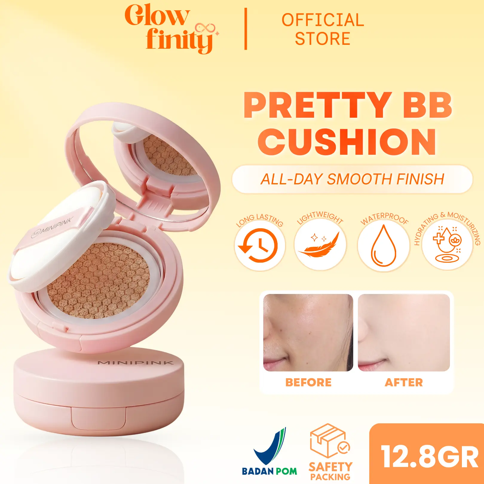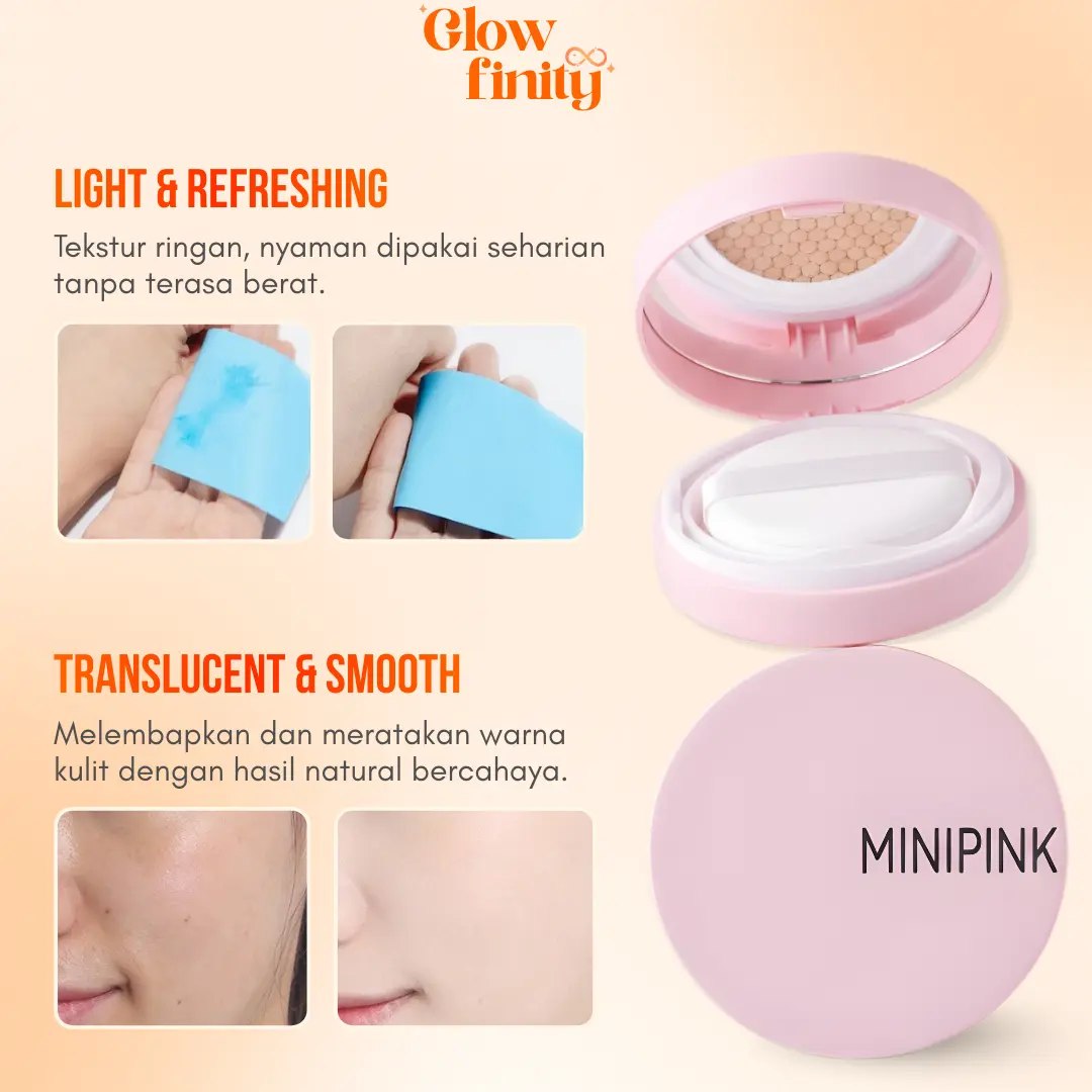 MINIPINK Pretty BB Cushion Makeup Base Wajah Full Coverage Natural & Flawless Finish Lasting MP031