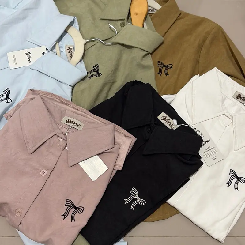 Sytera kemeja wanita bordir pita - Kemeja bordir pita dengan bahan soft suede lembut nyaman dipakai sehari-hari