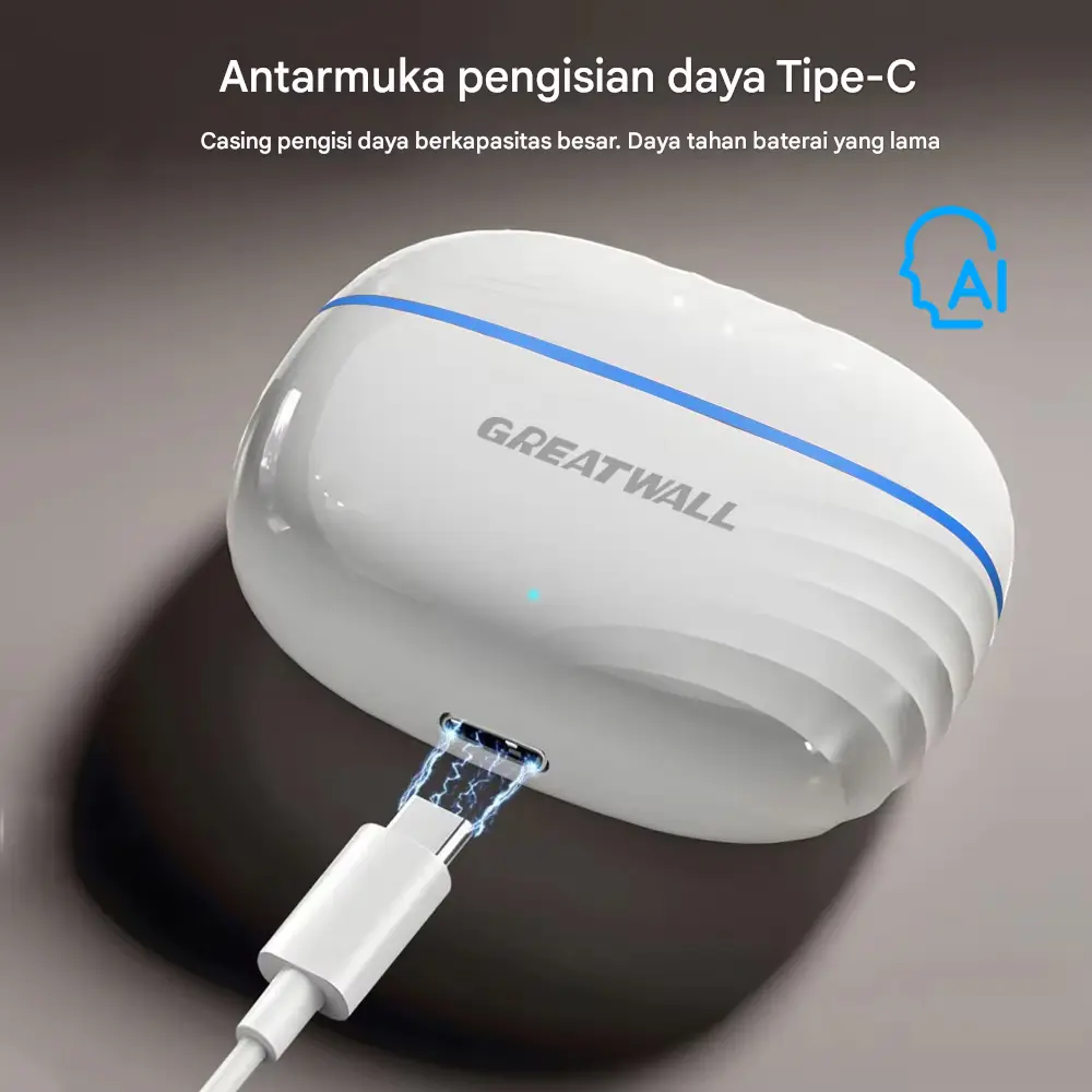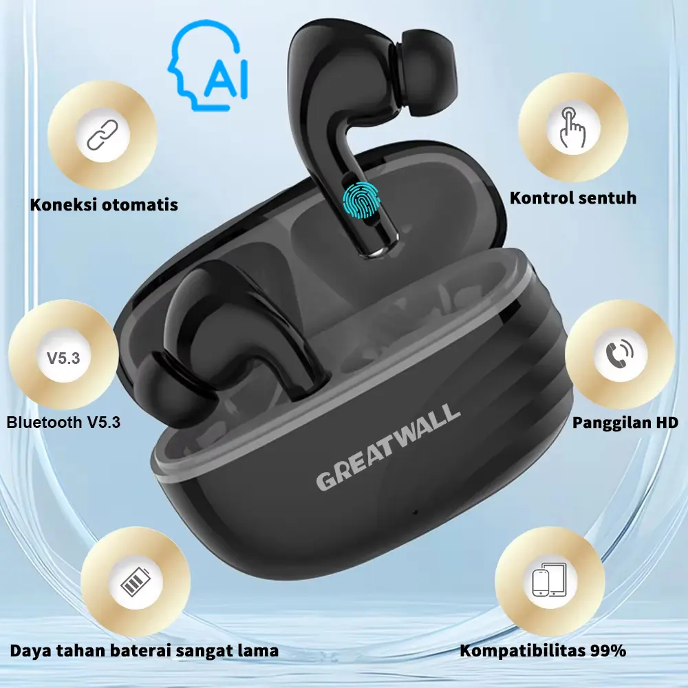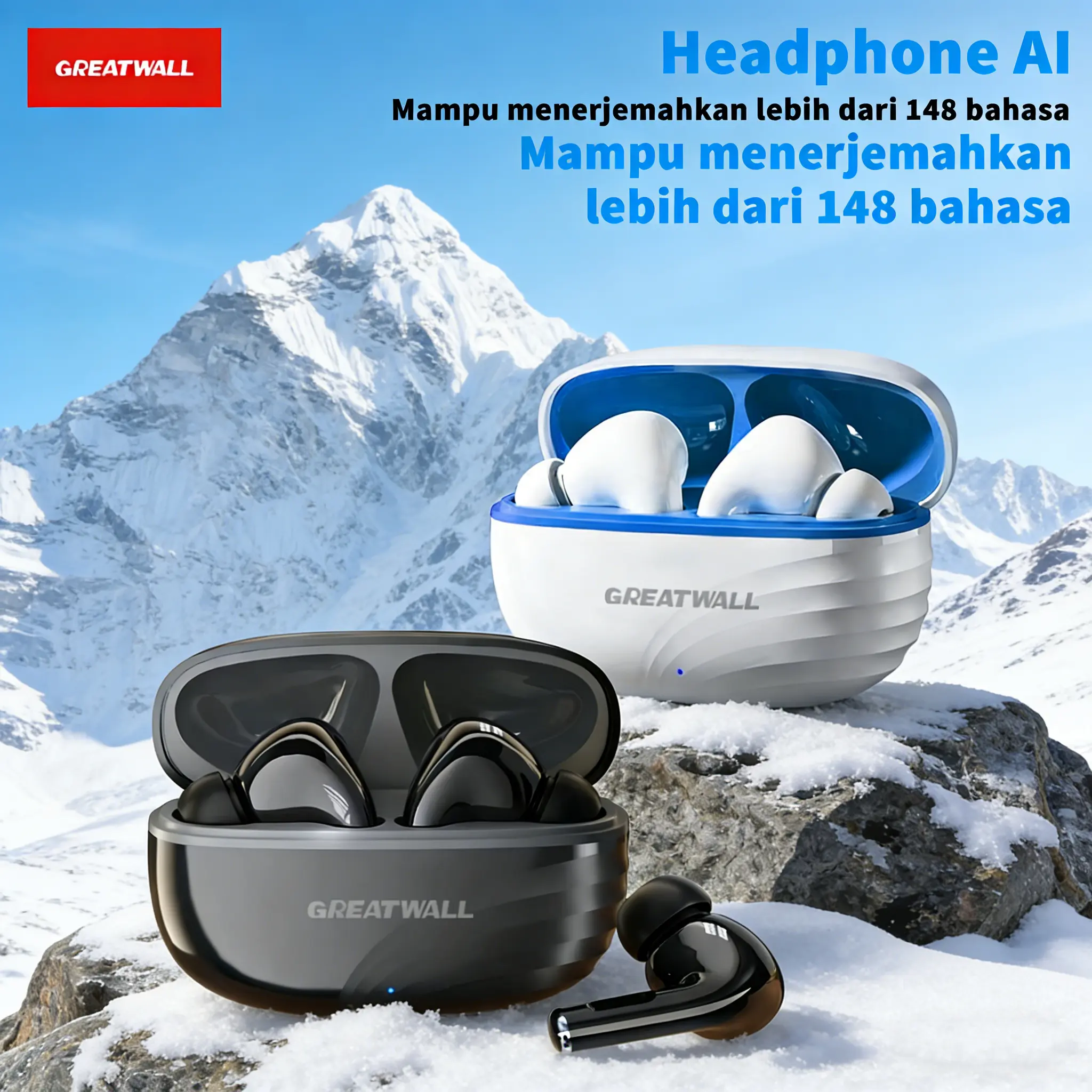 GREATWALL Headphone Wireless headset Earphone Terjemahan AI Bluetooth Baru: Suara berkualitas tinggi, peredam bising, masa pakai baterai lama, fitur pintar, kompatibel dengan Apple dan Android.