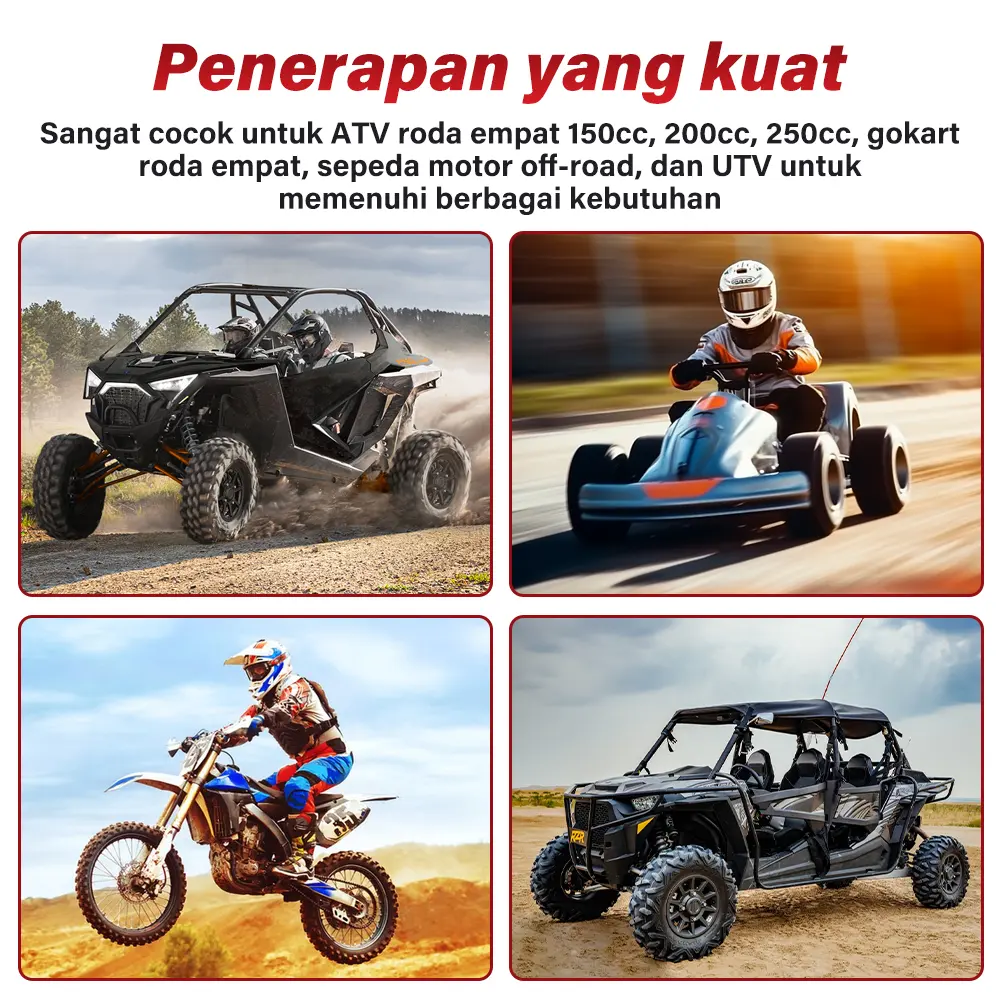 Sangat kompatibel dengan kendaraan segala medan roda empat 150cc, 200cc, dan 250cc, go-kart roda empat, sepeda motor off-road, dan UTV di Tiongkok. 🚗